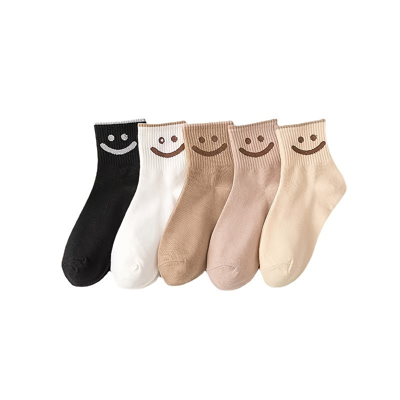 Sale 5 Pairs Smiling Face Socks, Thermal & Comfortable Casual Mid Tube Socks