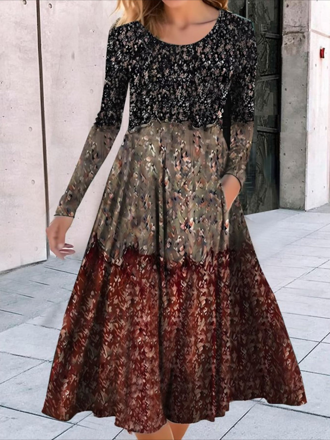 Sale Printed Short Sleeve Round Neck Elegant Vintage Pullover Boho Flower Midi Dress