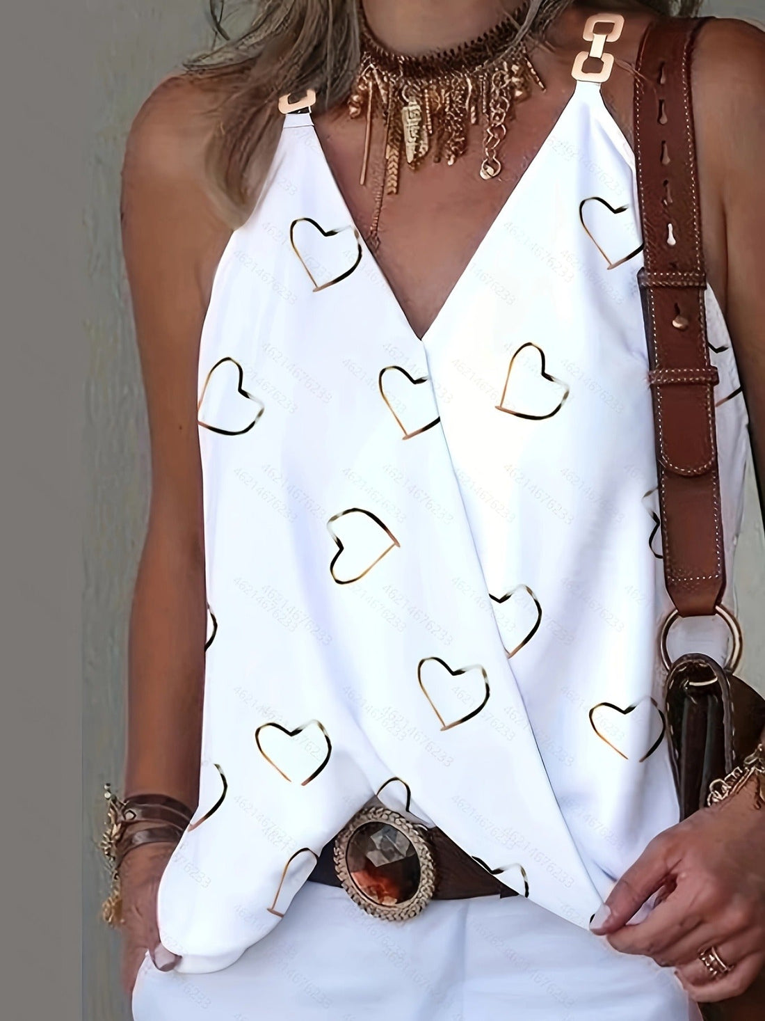 Sale Colorful Print Chain V Neck Tank Top, Casual Sleeveless Tank Top