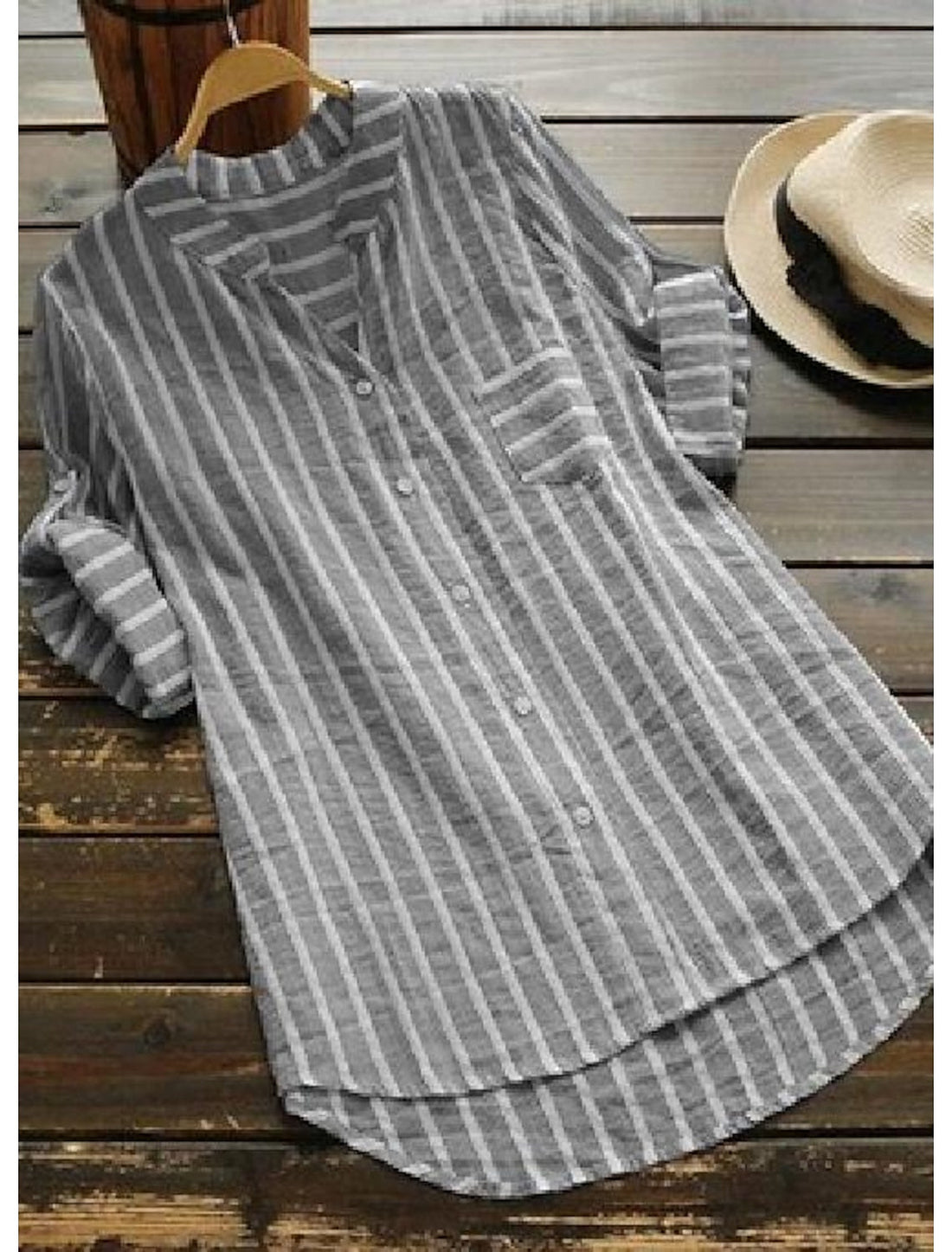 Sale Women's Cotton Button Front Stripes Light Blouse