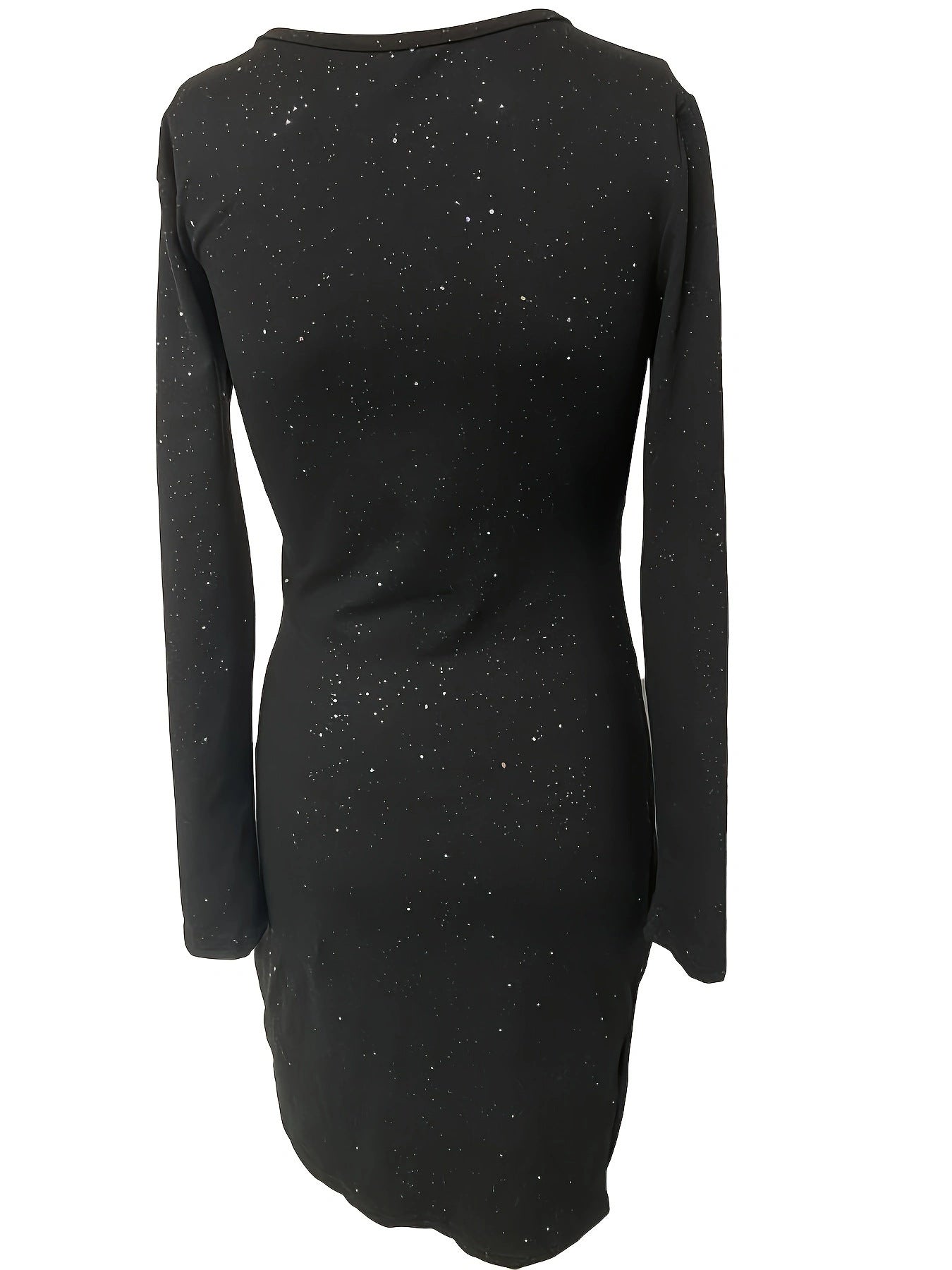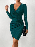 1pc Elegant V-Neck Long Sleeve Bodycon Dress for Women - Solid Color, No Padding