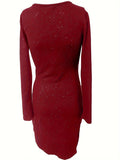 Sale 1pc Elegant V-Neck Long Sleeve Bodycon Dress for Women - Solid Color, No Padding
