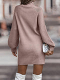 1pc Women'S Casual Acrylic Midi Sweater Dress - High Neck, Solid Color, Knit Fabric