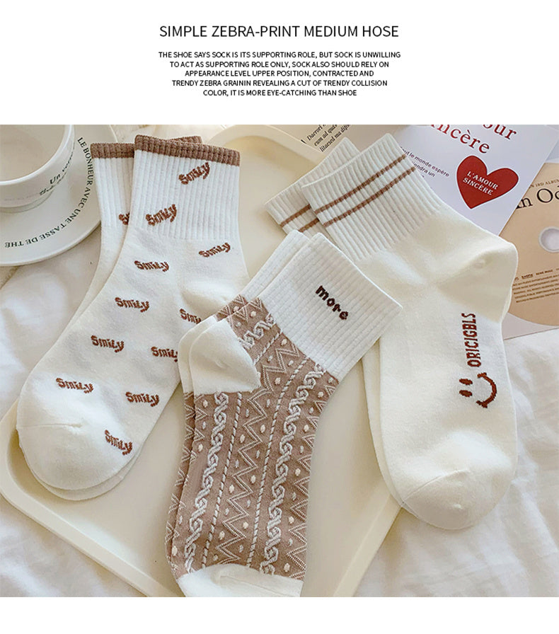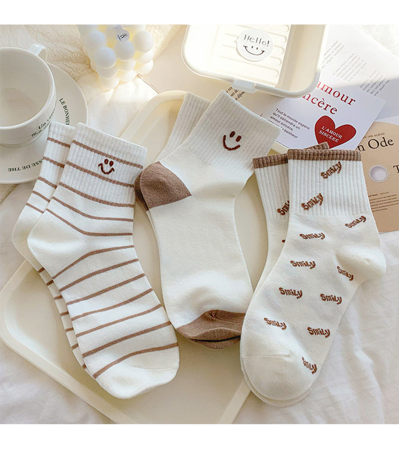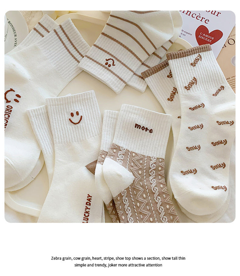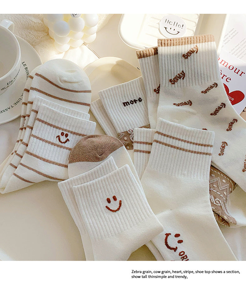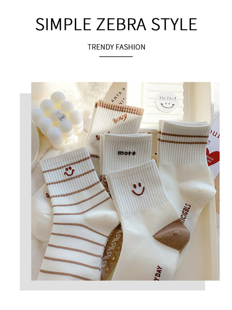 Sale 5 Pairs Cute Smiling Print Socks, Comfy & Soft Crew Sports Socks