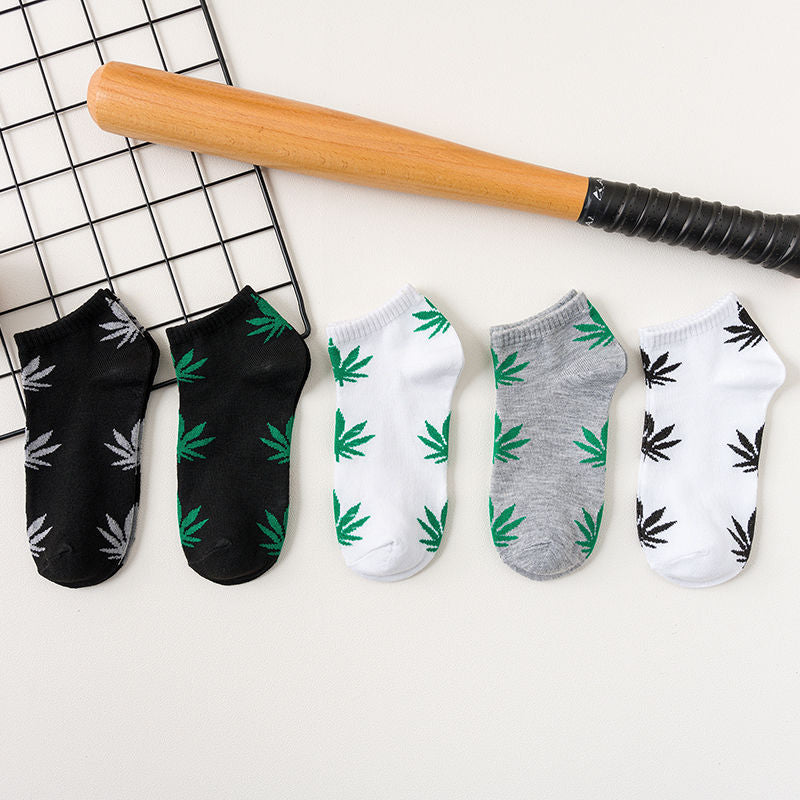 Sale 5 Pairs Leaf Print Ankle Socks, Soft & Lightweight Sports Socks