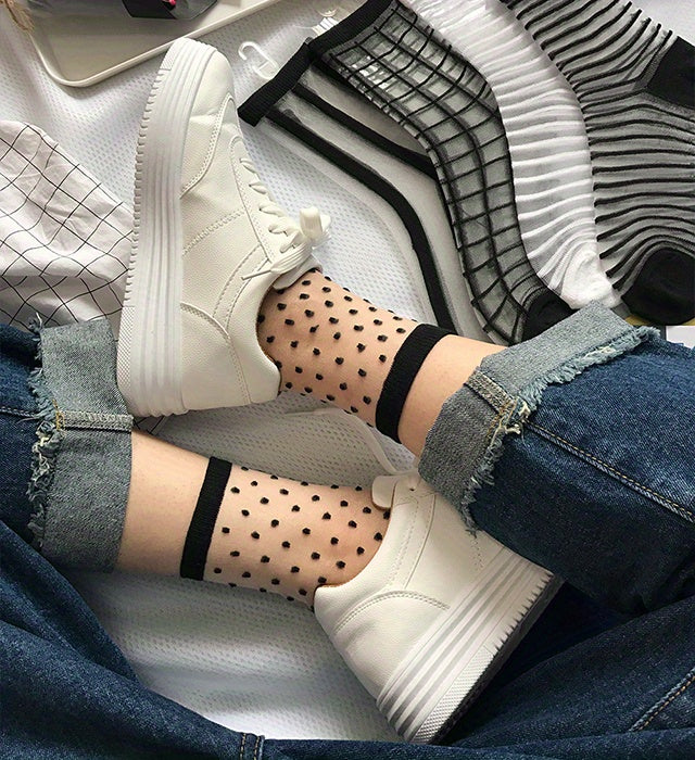 5 Pairs Sheer Mesh Socks, Lightweight & Breathable Mid Tube Socks