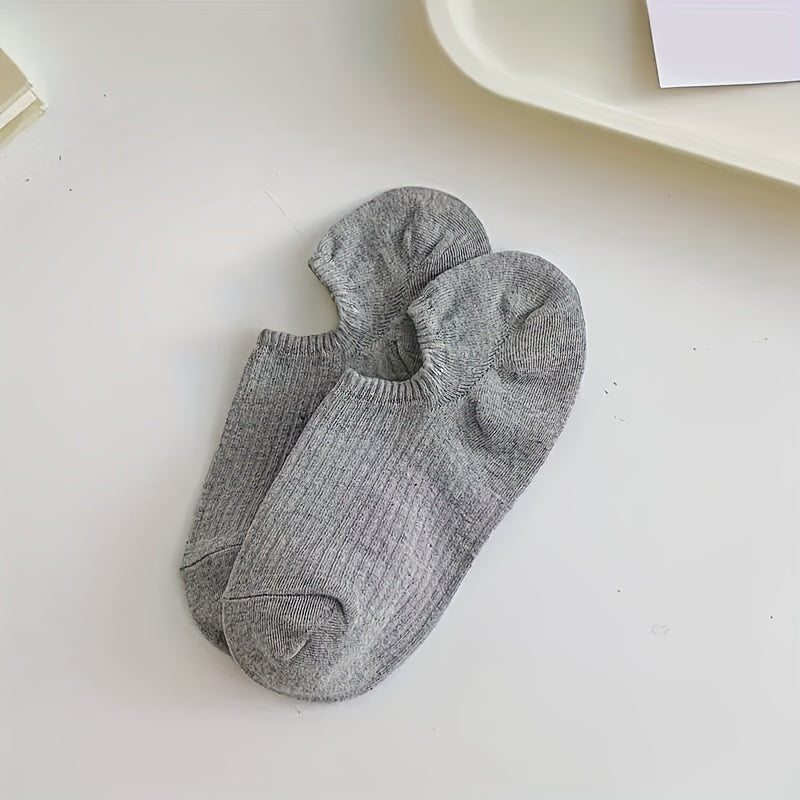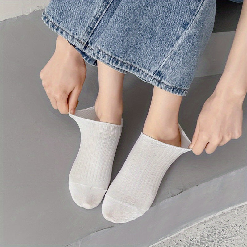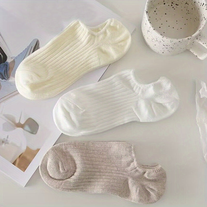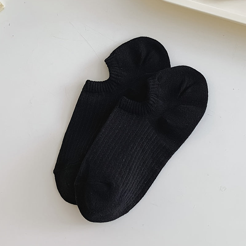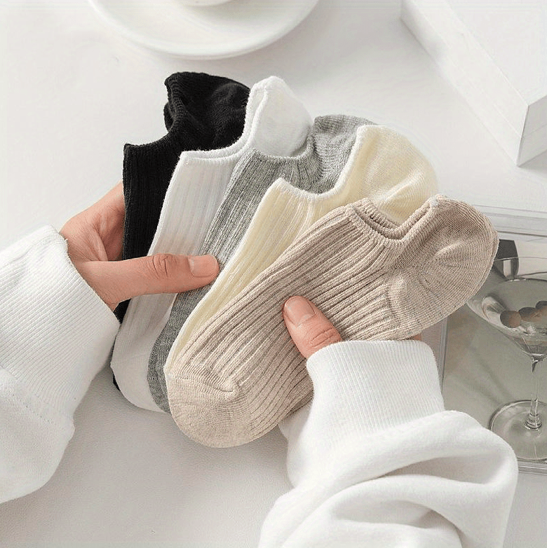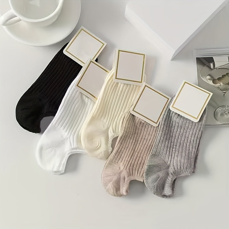 Sale 5 Pairs Solid Ribbed Socks, Casual & Comfy All-match Ankle Socks