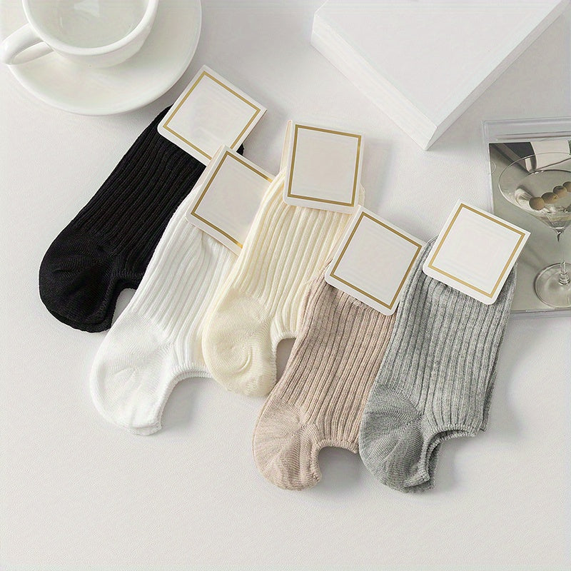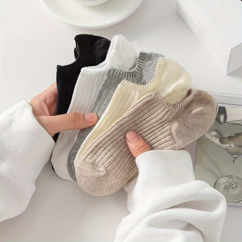 5 Pairs Solid Ribbed Socks, Casual & Comfy All-match Ankle Socks