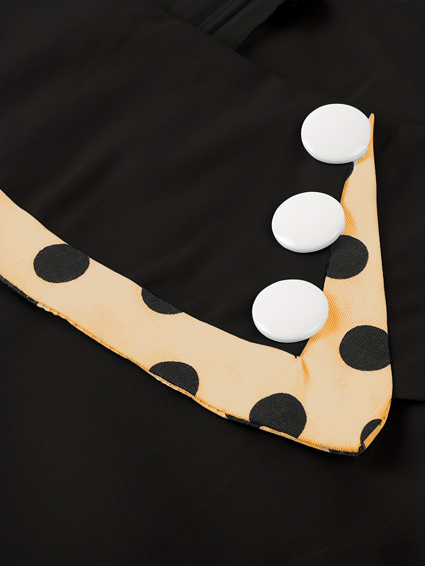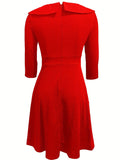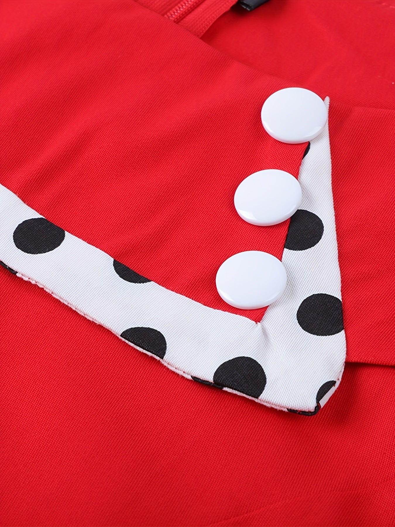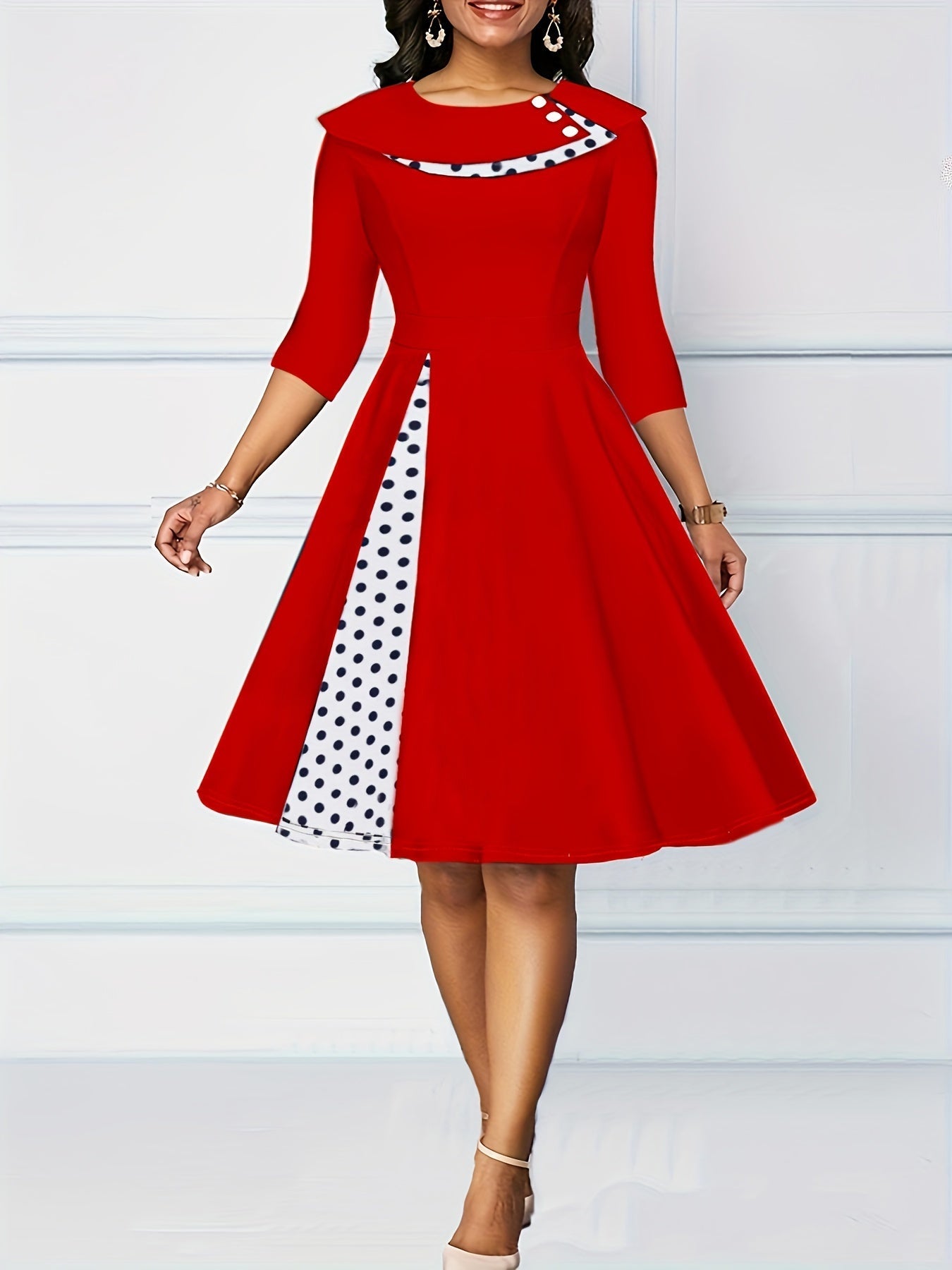 A-line Retro Dress, 3/4 Sleeve Polka Dot Casual Dress