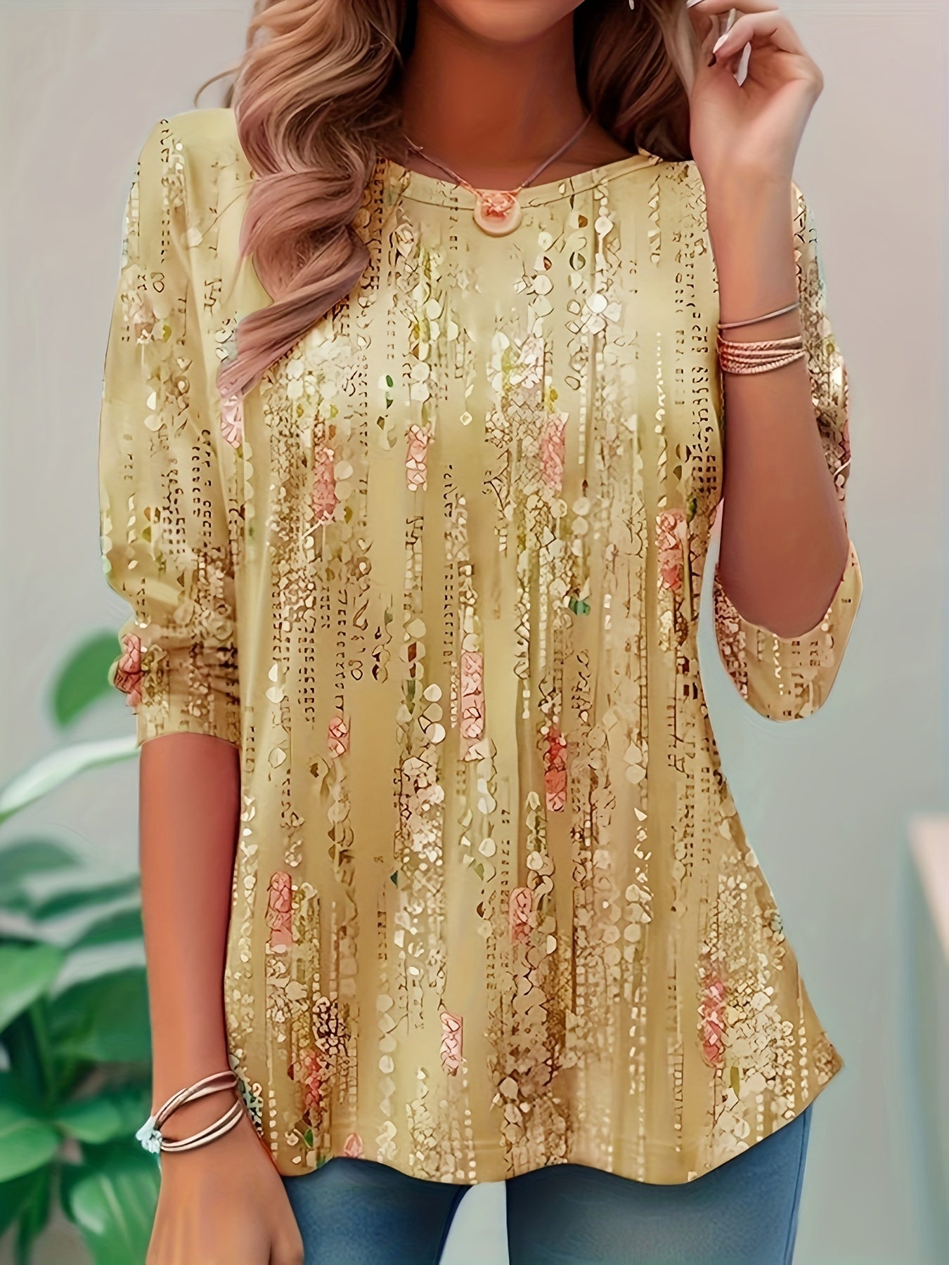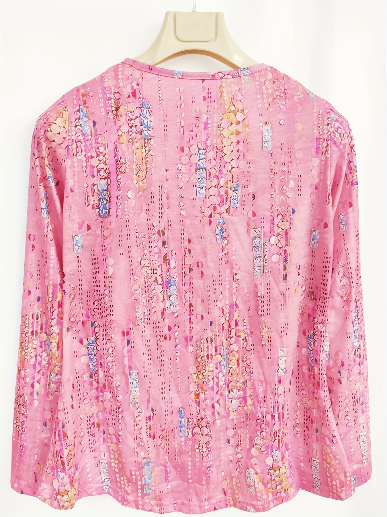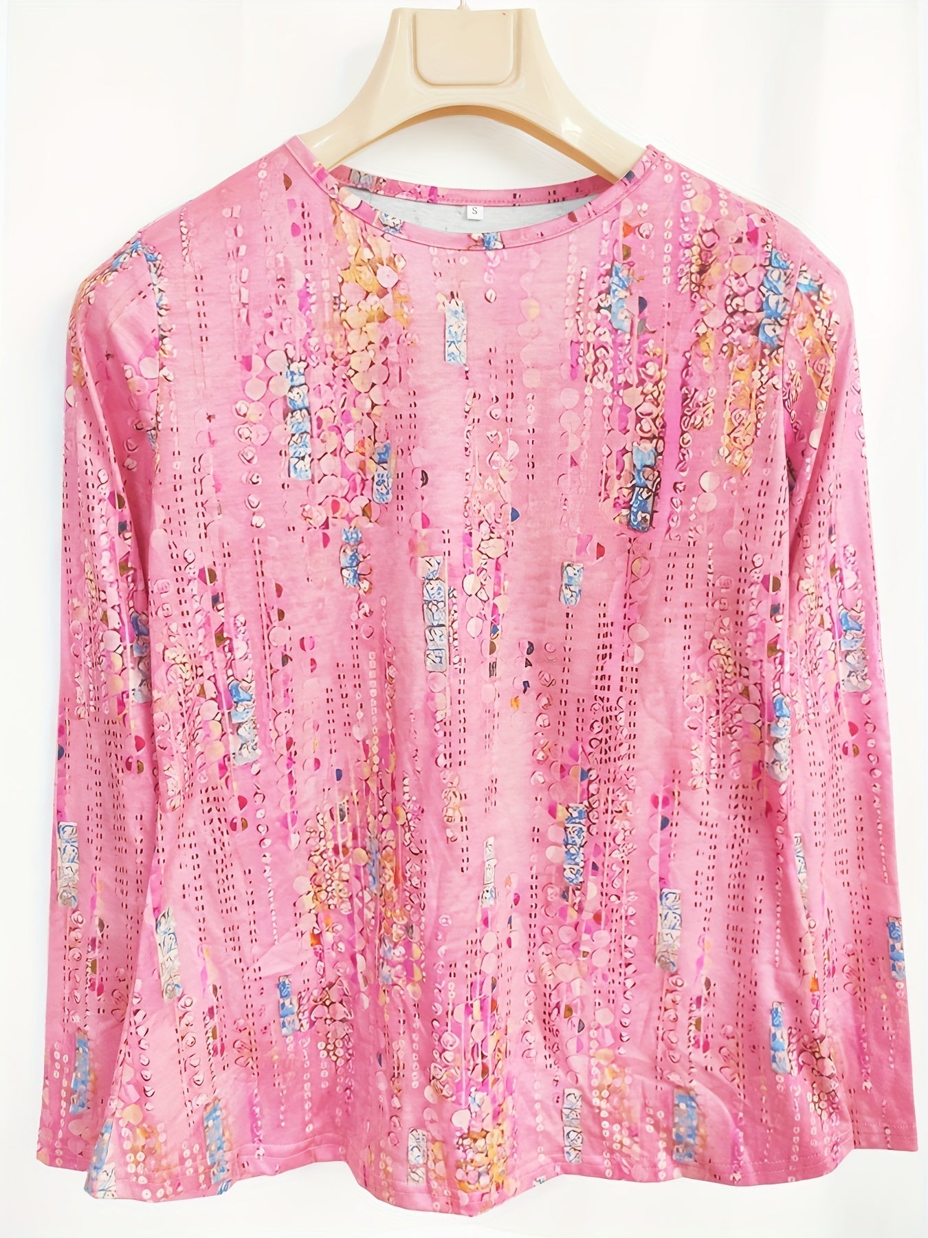 Allover Print Crew Neck T-Shirt, Casual Long Sleeve T-Shirt