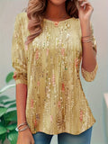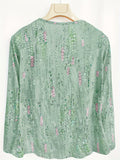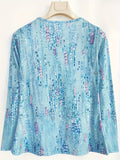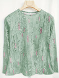 Sale Allover Print Crew Neck T-Shirt, Casual Long Sleeve T-Shirt