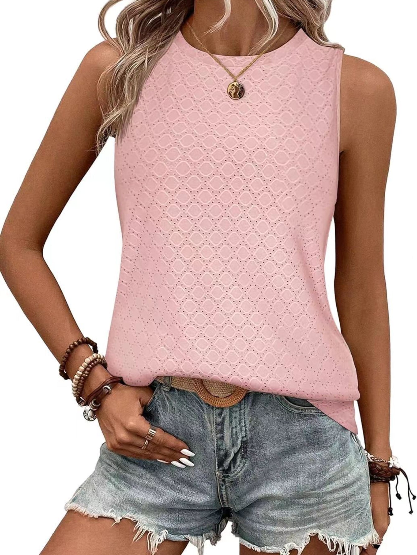 Sale Textured Mock Neck Tank Top, Casual Sleeveless Top