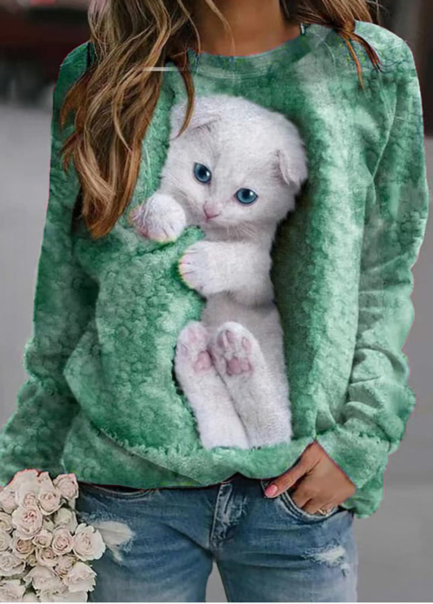 Sale Animal Print Loose Fit Long Sleeve Round Neck T-Shirt