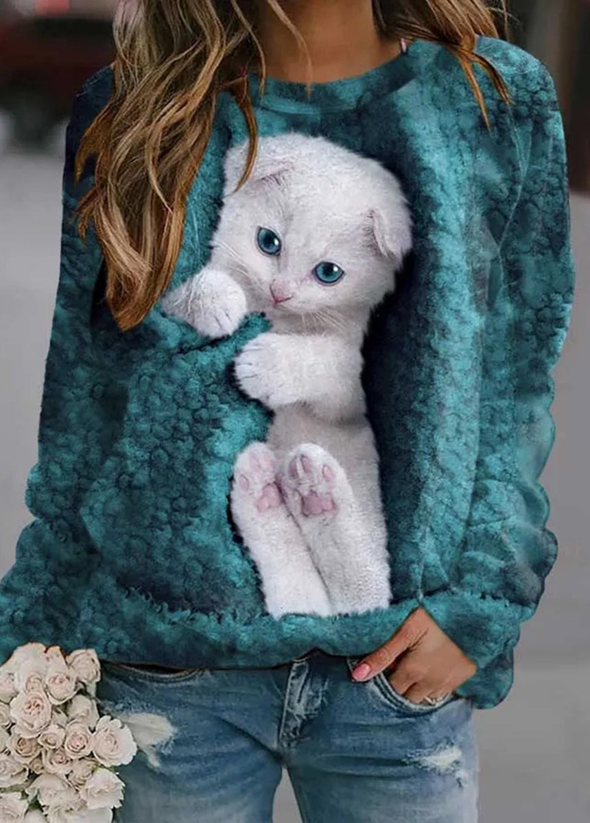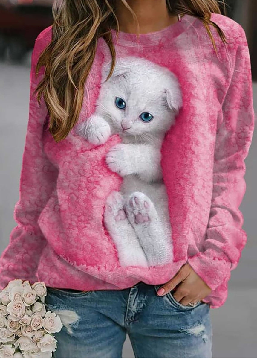 Animal Print Loose Fit Long Sleeve Round Neck T-Shirt