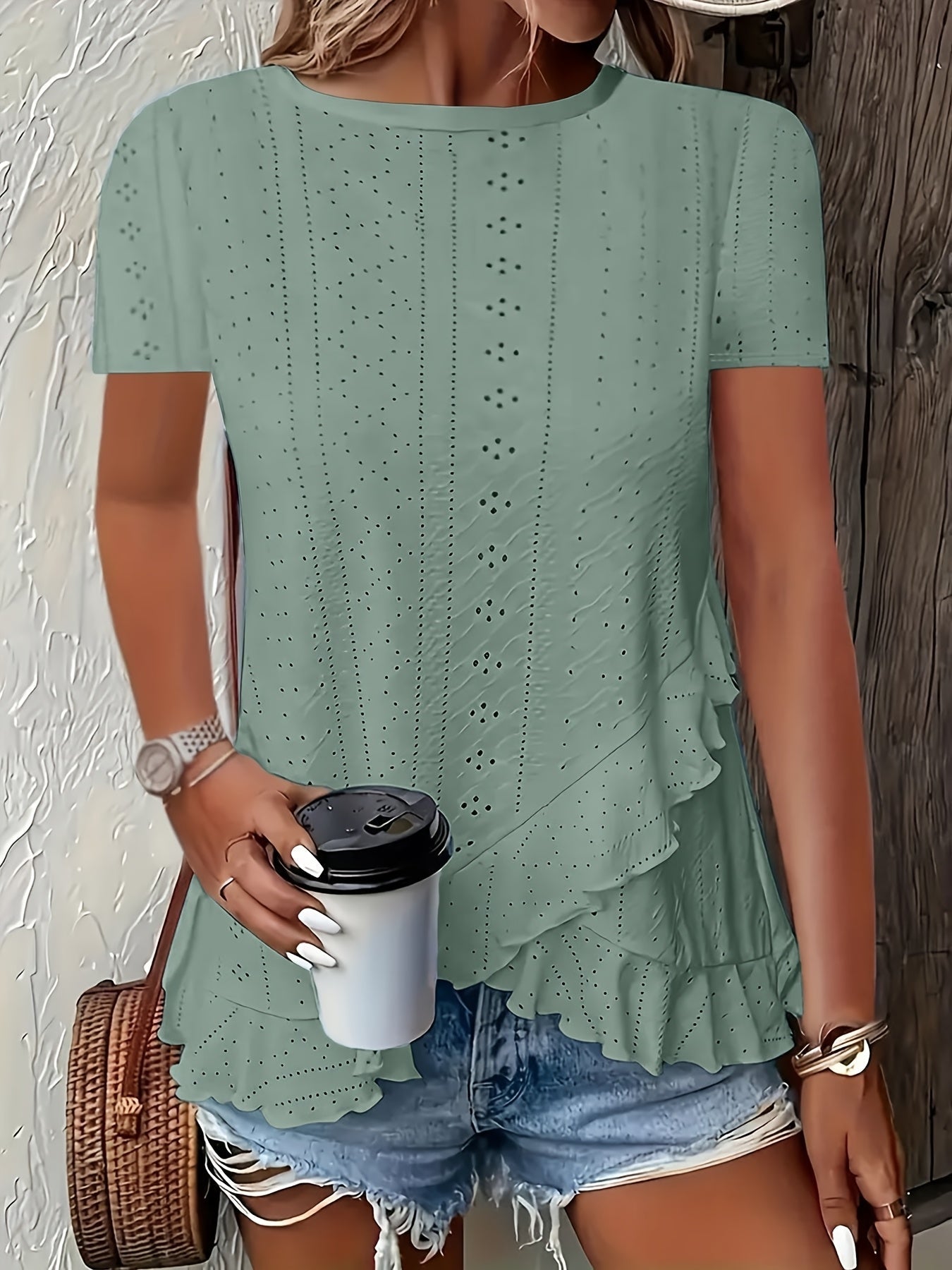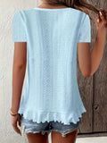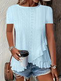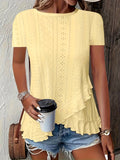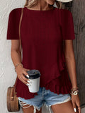 Asymmetrical Ruffle Hem Short Sleeve Round Neck T-Shirt