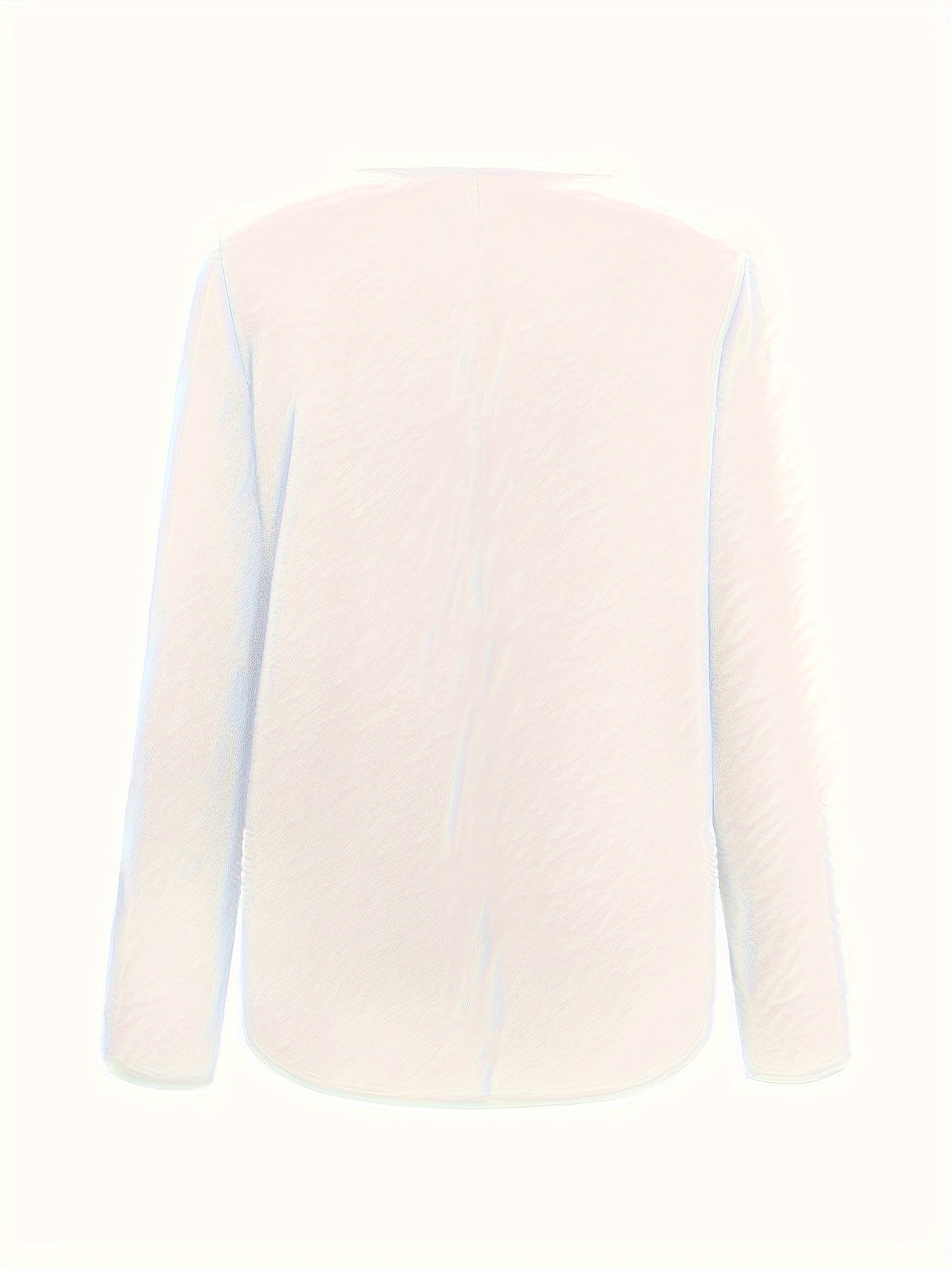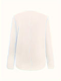 Button Detail Asymmetrical Neck T-shirt, Versatile Long Sleeve Top