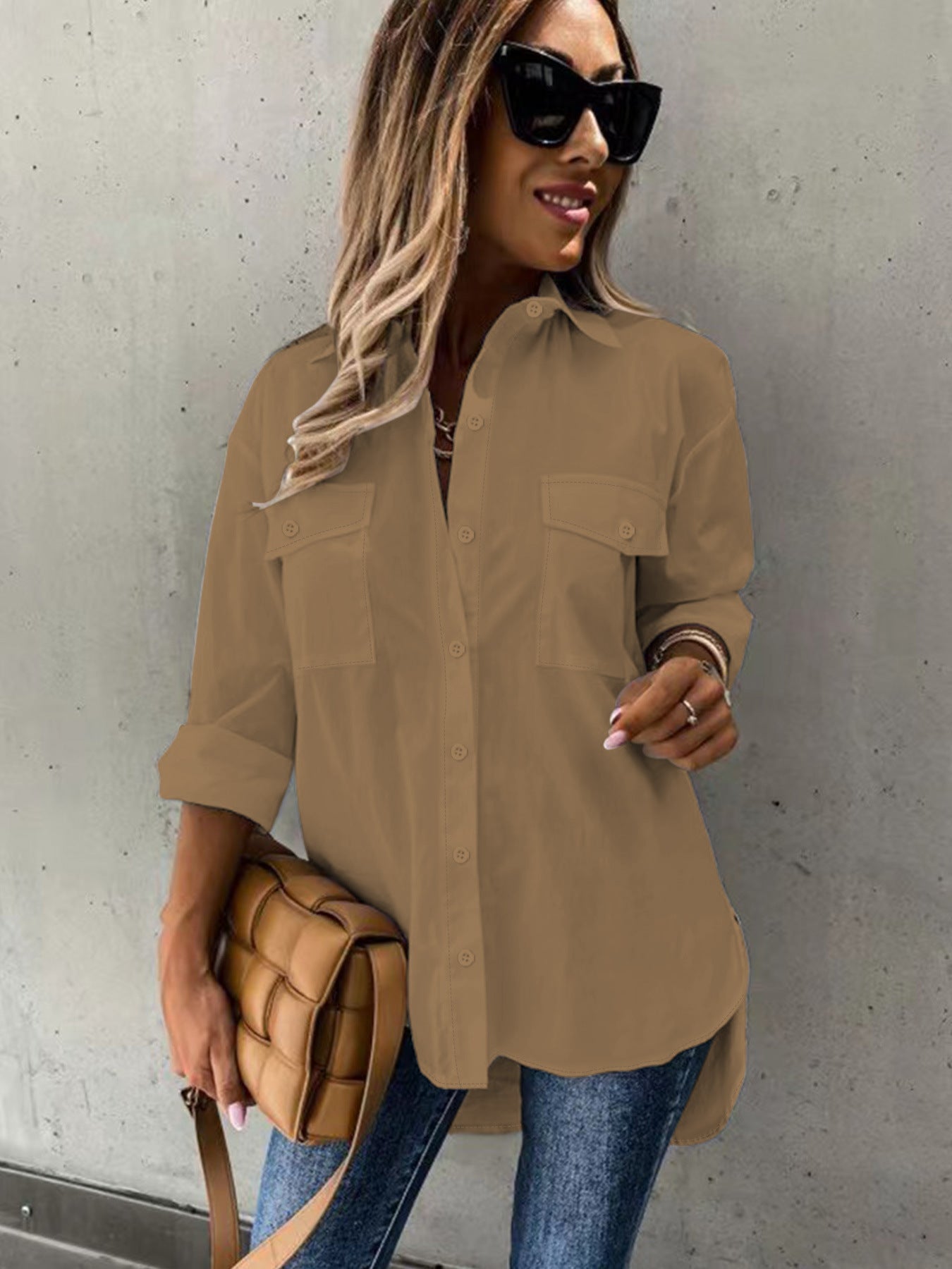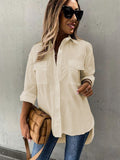 Sale Button Front Long Sleeve Shirt, Casual Solid Office Shirt With Collar