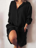 Button Front Solid Shirt Dress, Casual Long Sleeve Long Length Dress