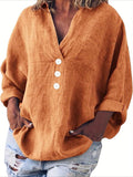 Sale Button Front V Neck Blouse, Casual Pocket Long Sleeve Blouse
