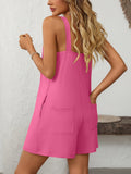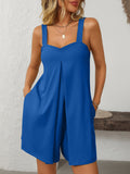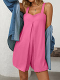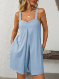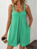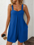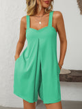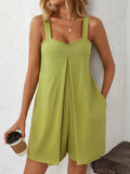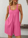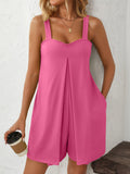 Casual Sleeveless Romper - V-Neck Strappy Jumpsuit with Front Pocket