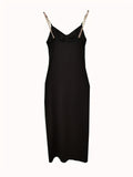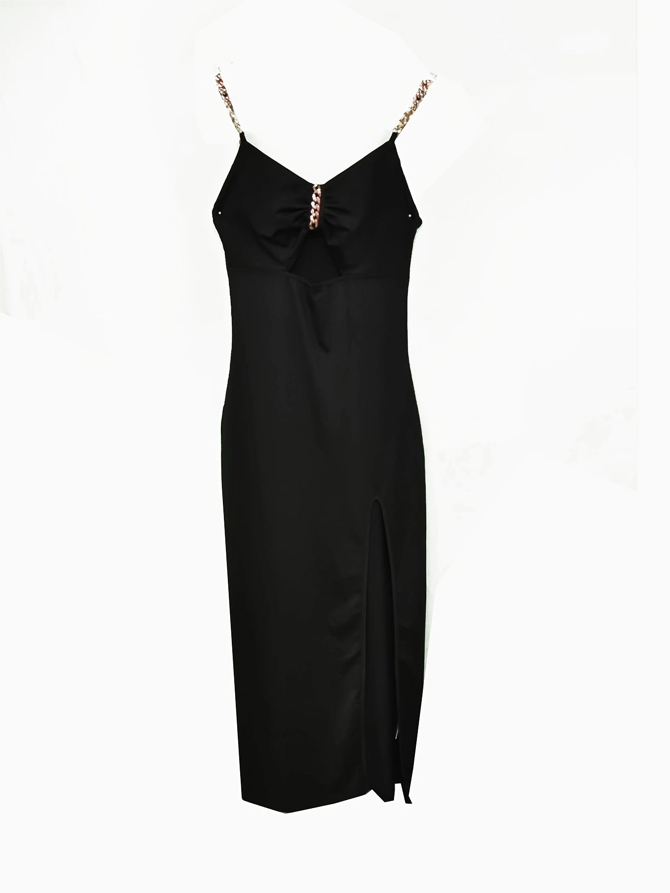 Chain Strap Solid Dress, Sexy Cut Out Split Thigh Party Dress