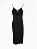 Sale Chain Strap Solid Dress, Sexy Cut Out Split Thigh Party Dress