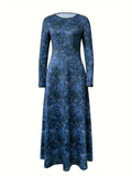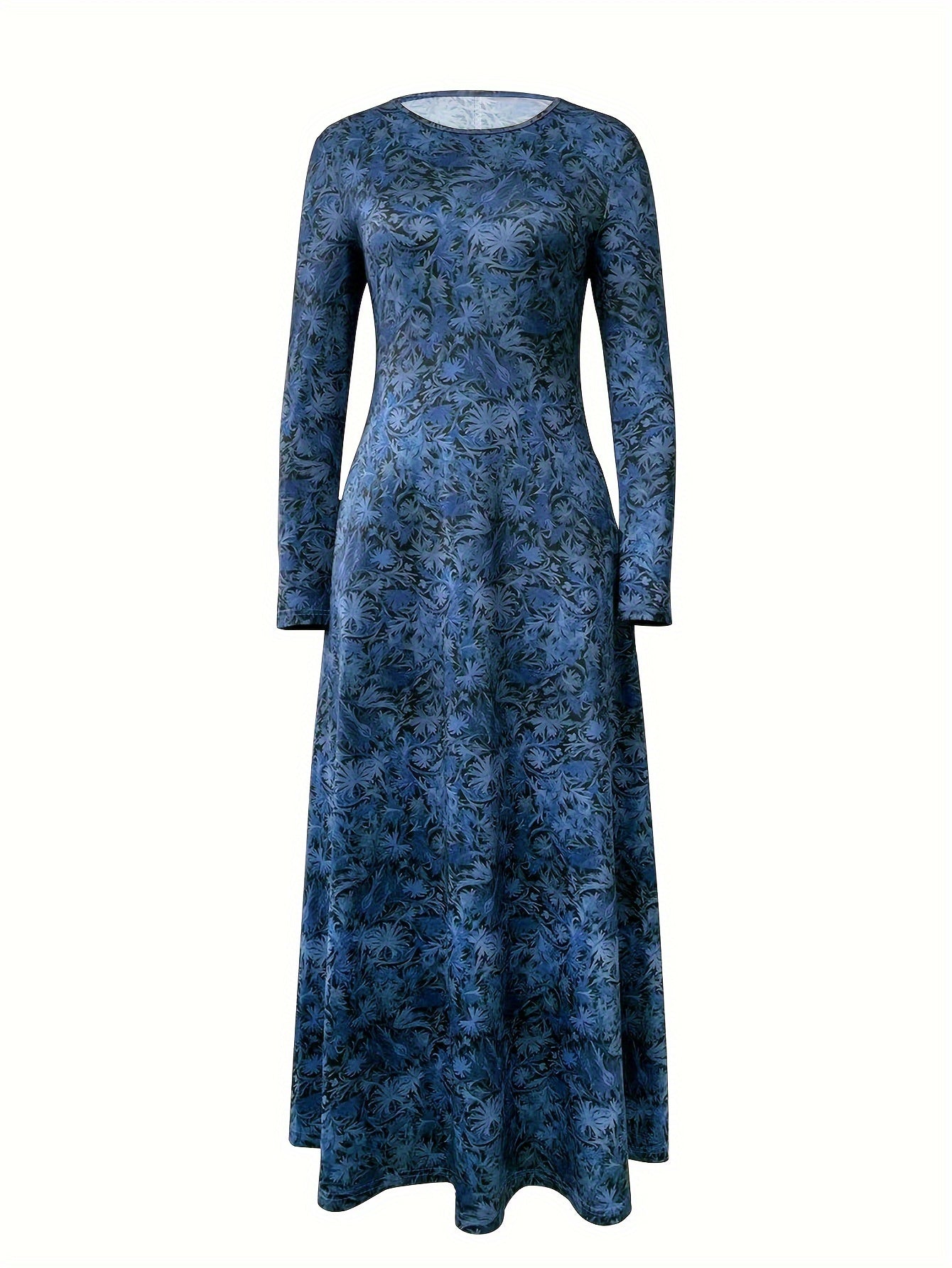 Chic Floral Print Maxi Dress - Stylish Crew Neck Long Sleeve - Comfortable Casual Wear