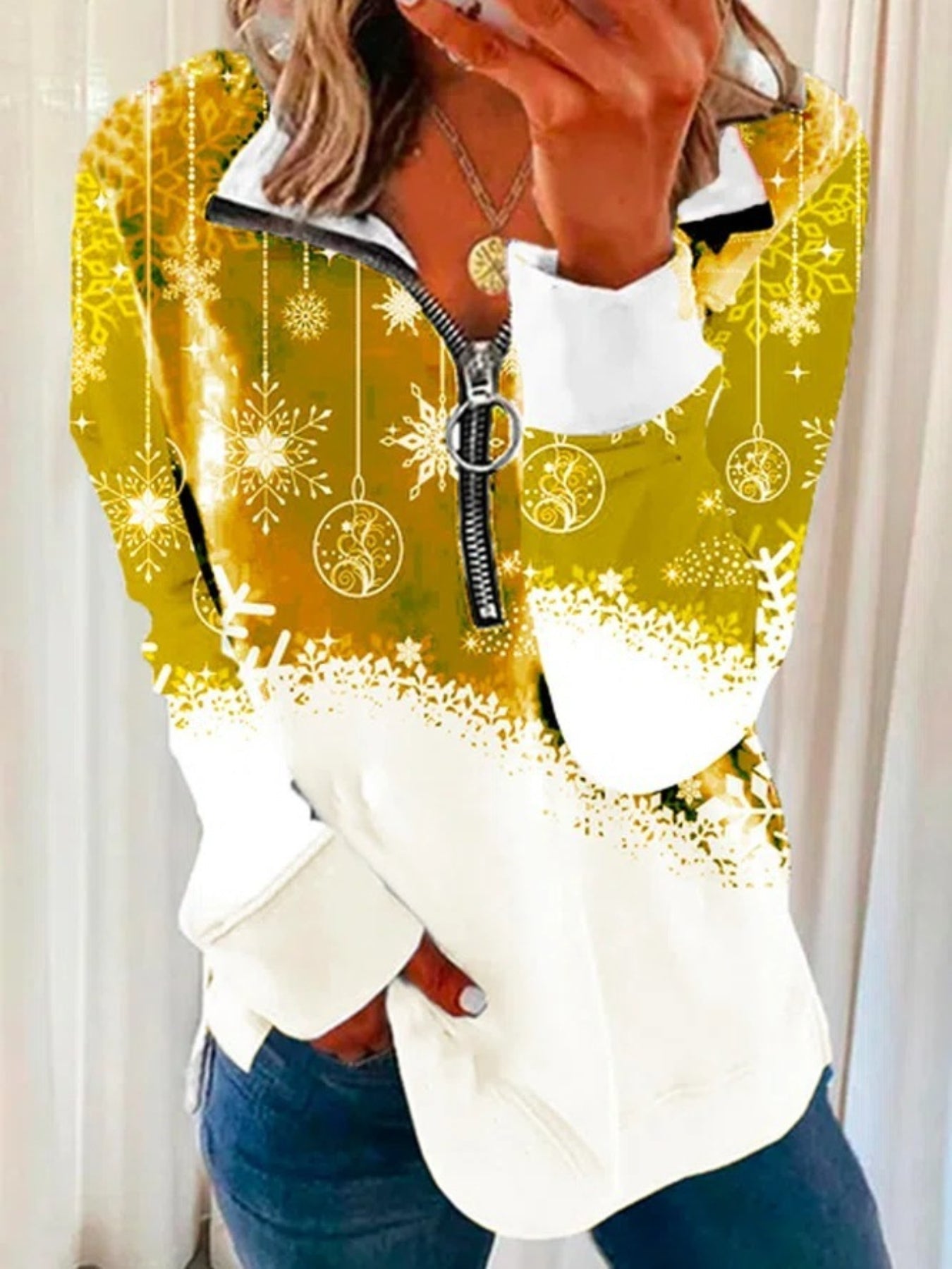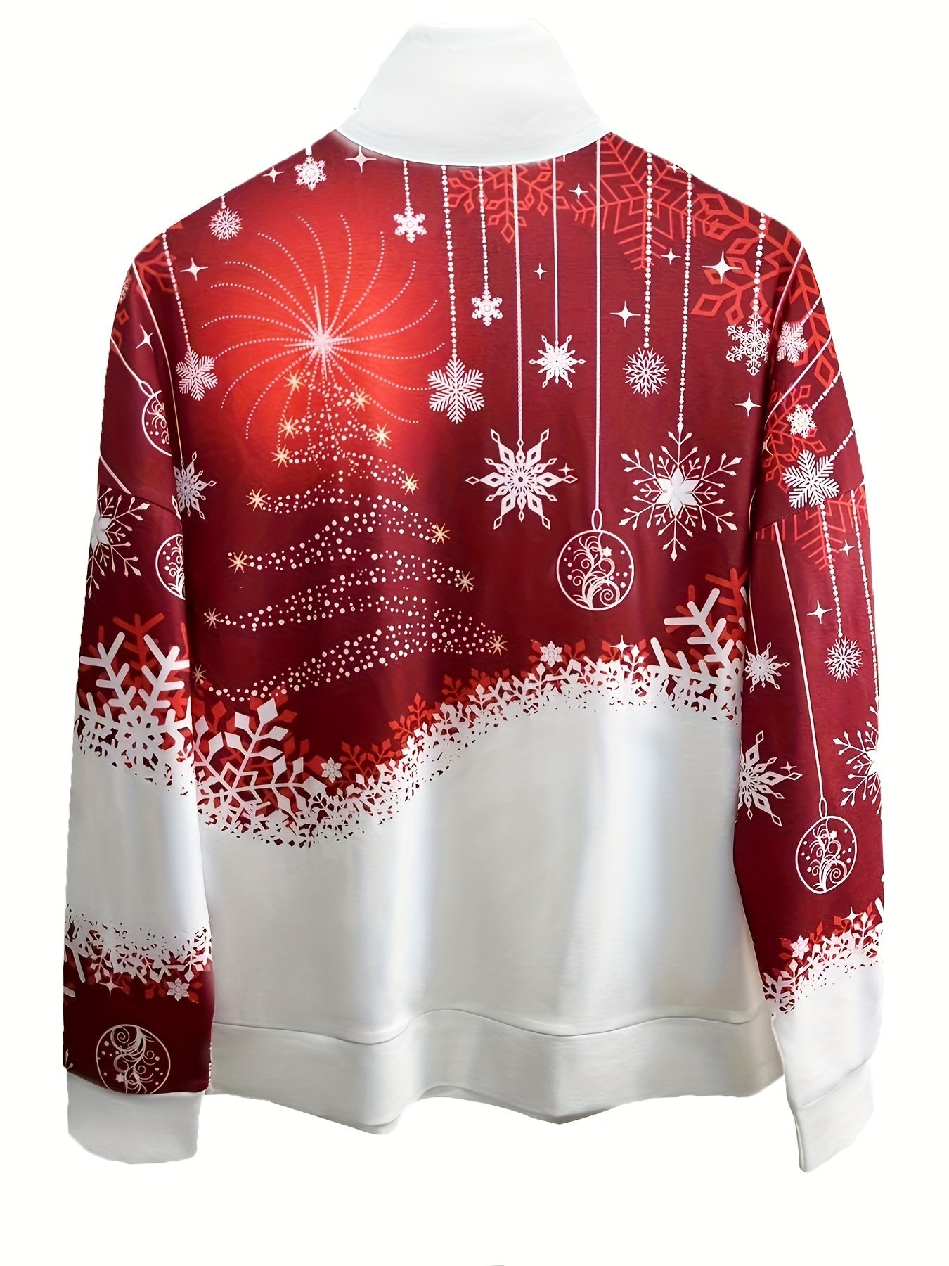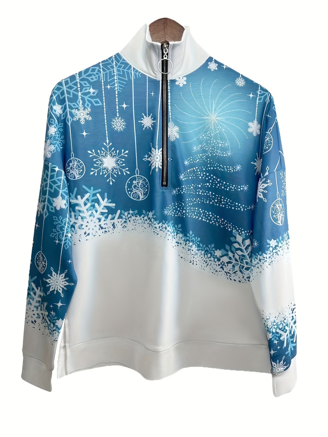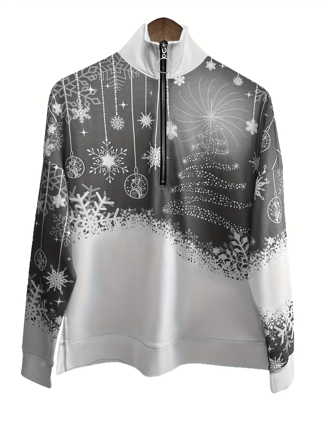 Sale Christmas Print Zip Stand Collar Sweatshirt, Casual Long Sleeve Loose Sweatshirt