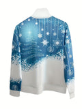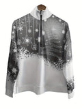 Christmas Print Zip Stand Collar Sweatshirt, Casual Long Sleeve Loose Sweatshirt