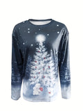 Christmas Tree Print Sweatshirt, Casual Long Sleeve Crew Neck Sweatshirt