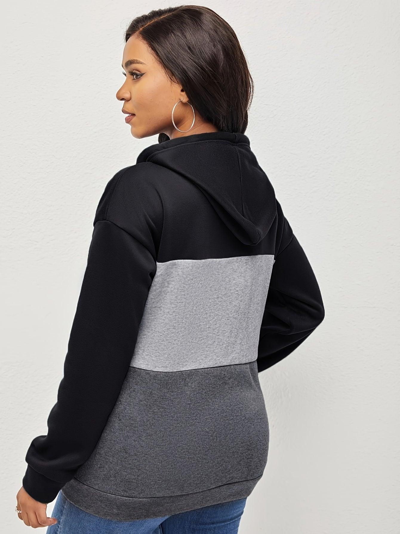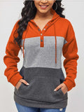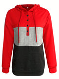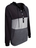 Color Block Button Drawstring Hoodie, Casual Long Sleeve Kangaroo Pocket Sweatshirt