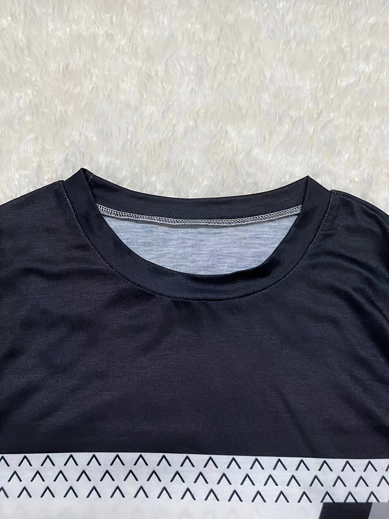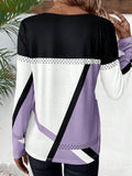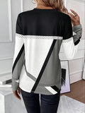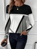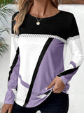 Sale Color Block Crew Neck T-shirt, Casual Long Sleeve Top