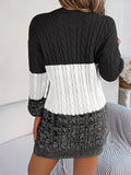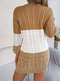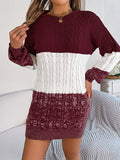 Color Block Long Sleeve Dress, Crew Neck Cable Knit Slim Dress