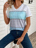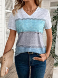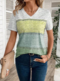Color Block V Neck T-Shirt, Casual Short Sleeve T-Shirt
