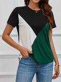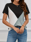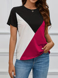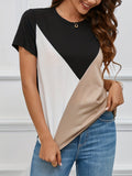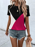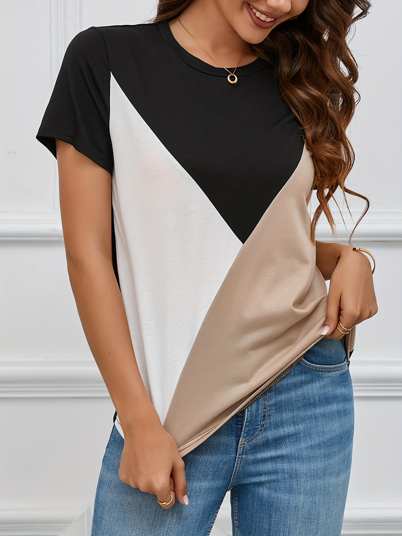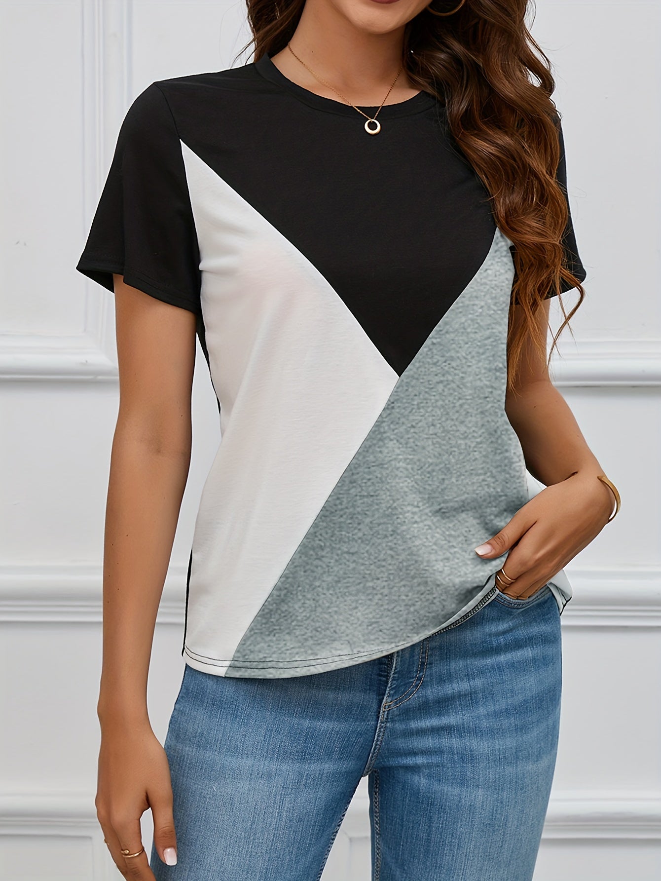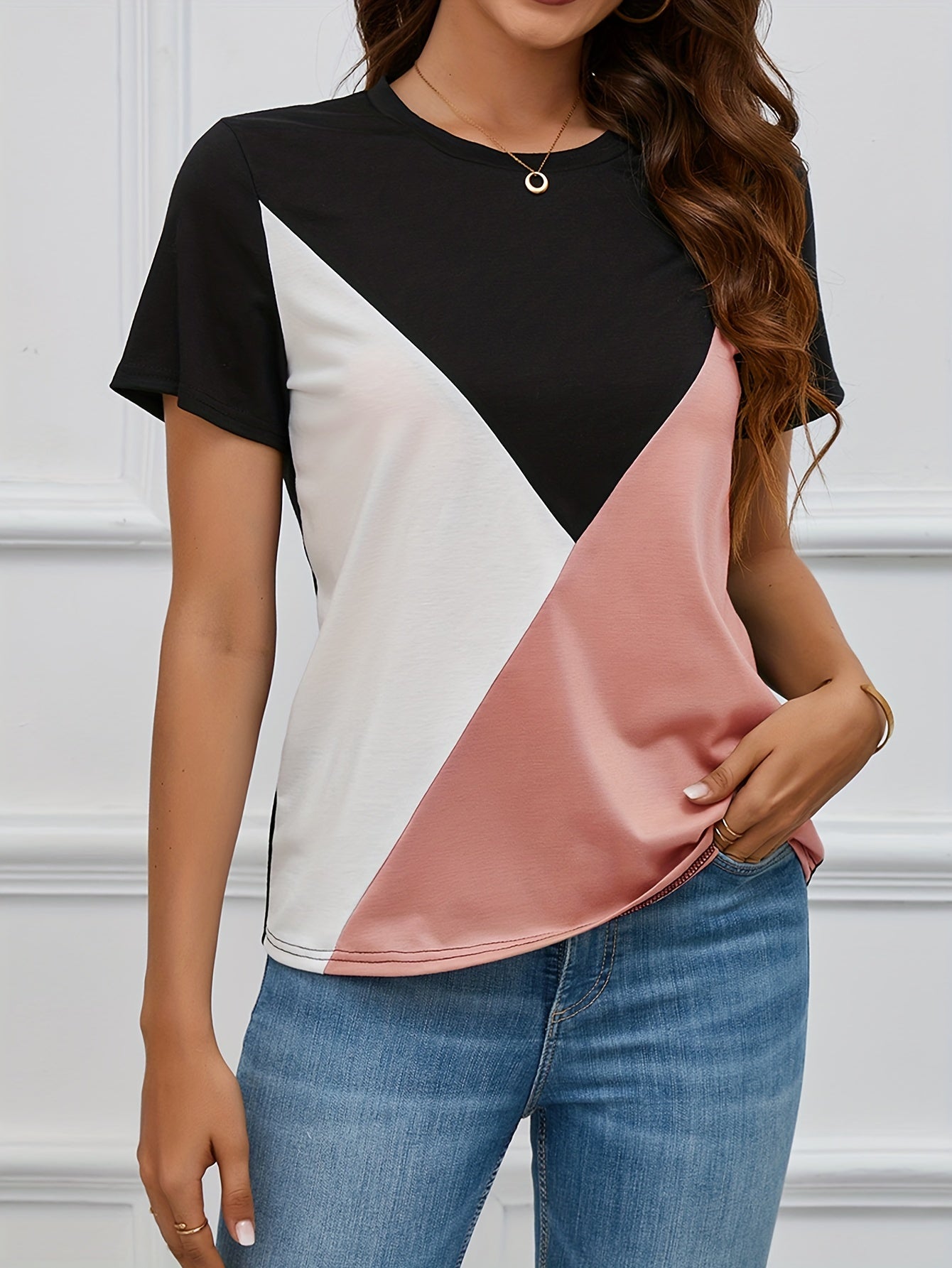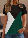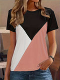 Colorblock Print T-shirt, Casual Short Sleeve Crew Neck T-shirt