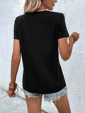 Sale Solid Pleated Trim Blouse, Casual Crew Neck Short Sleeve Blouse