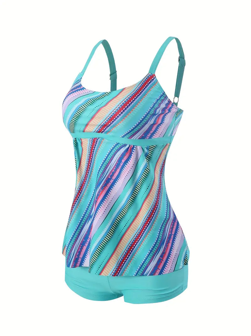 Colorful Digital Pattern Tankini Sets, Boxer Shorts Stretchy Tummy Cover Two Piece Swimsuit