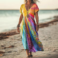 Colorful Sun Collage Art Print Short Sleeve Comfy Casual Maxi Dress