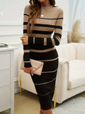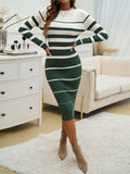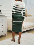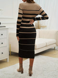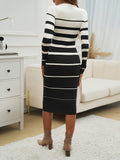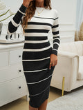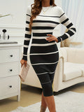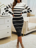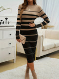 Cozy Comfort, Elegant Striped Knit Sweater Dress - Long Sleeve, Crew Neck
