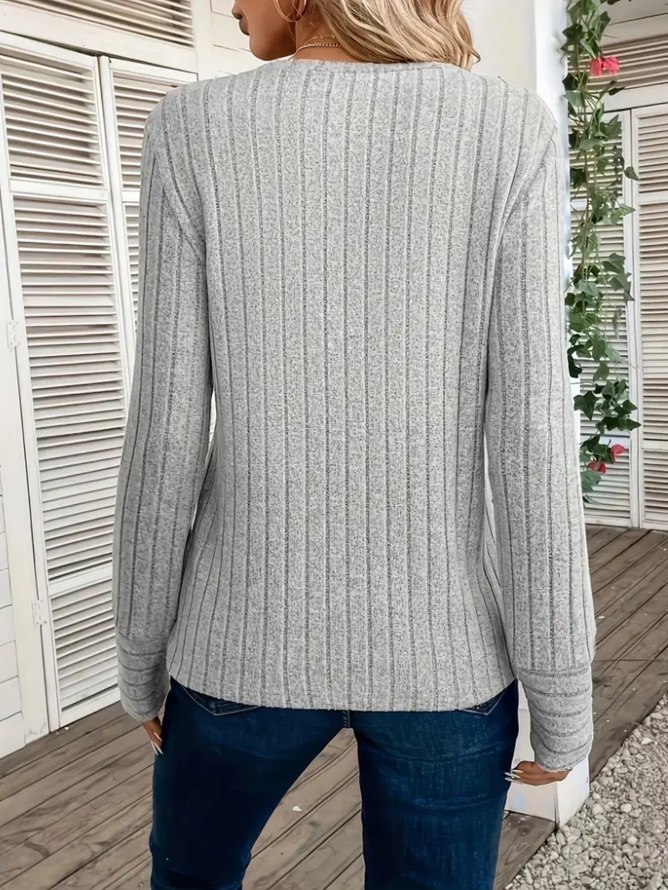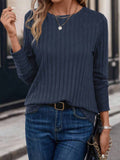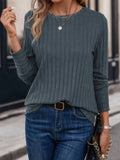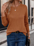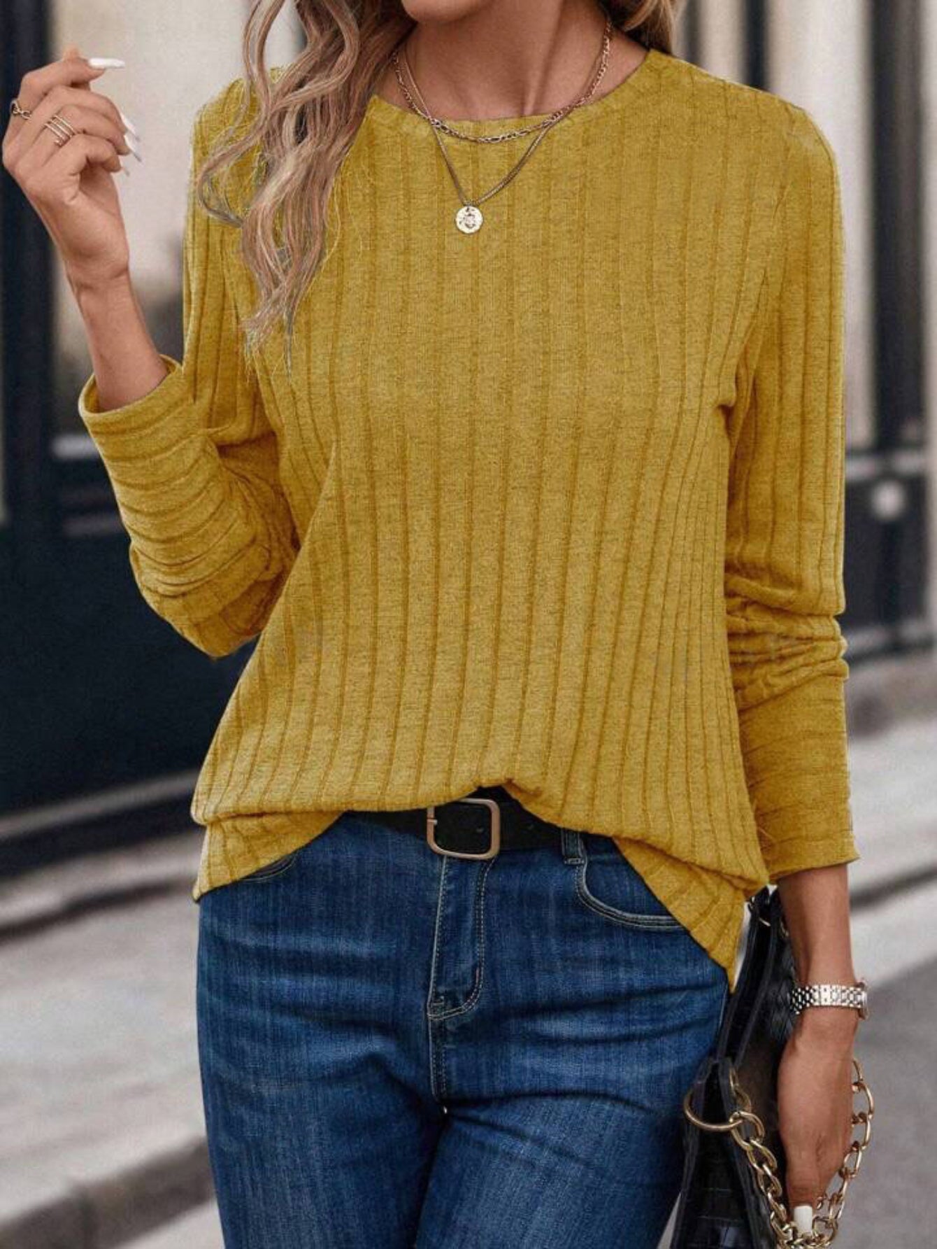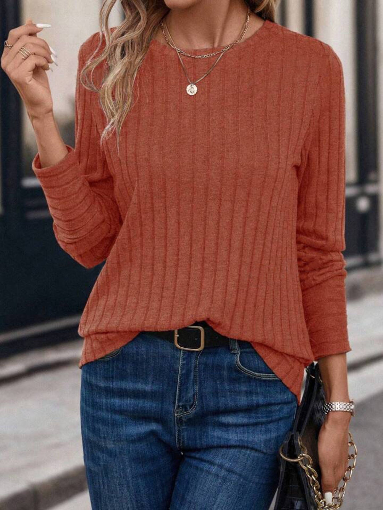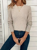 Cozy Rib Knit Crew Neck Sweater - Pullovers for Women with Elegant Long Sleeves