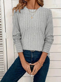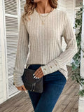 Sale Cozy Rib Knit Crew Neck Sweater - Pullovers for Women with Elegant Long Sleeves