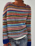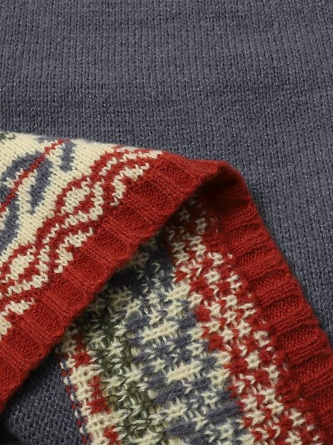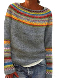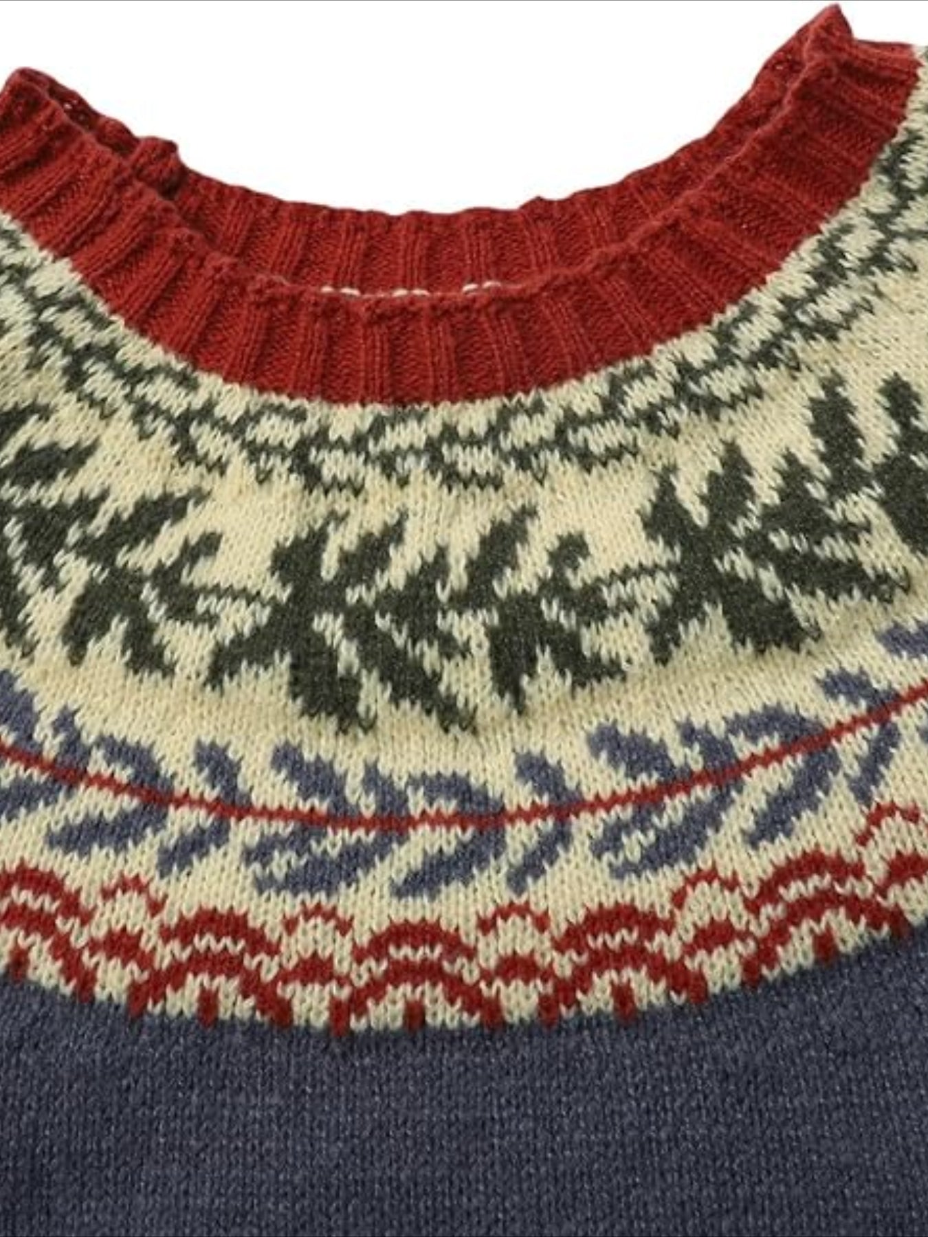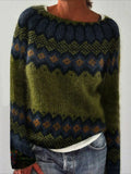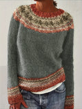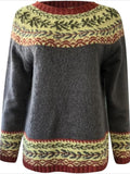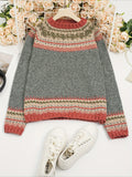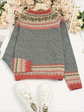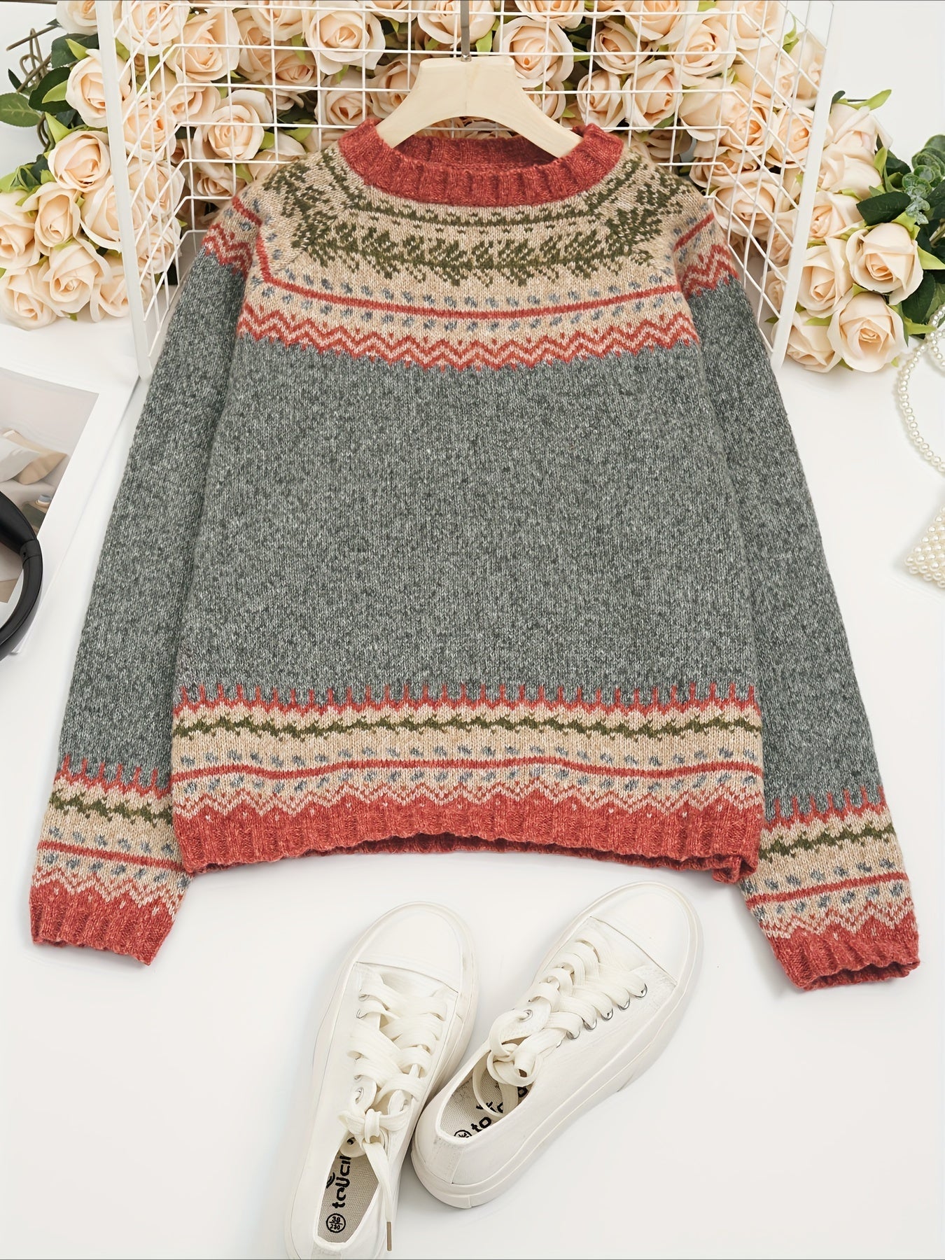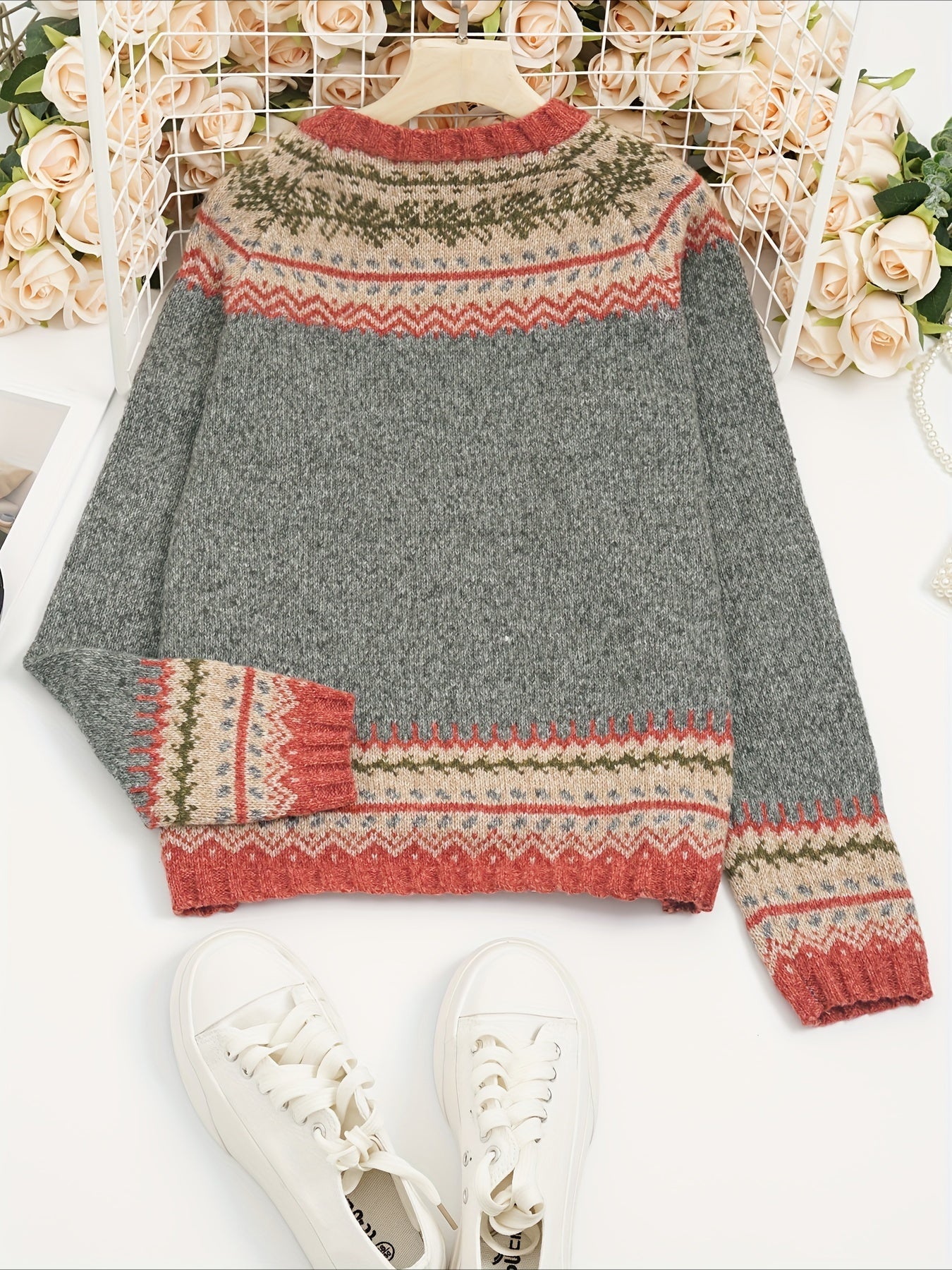 Crew Neck Faire Isle Sweater, Casual Long Sleeve Sweater