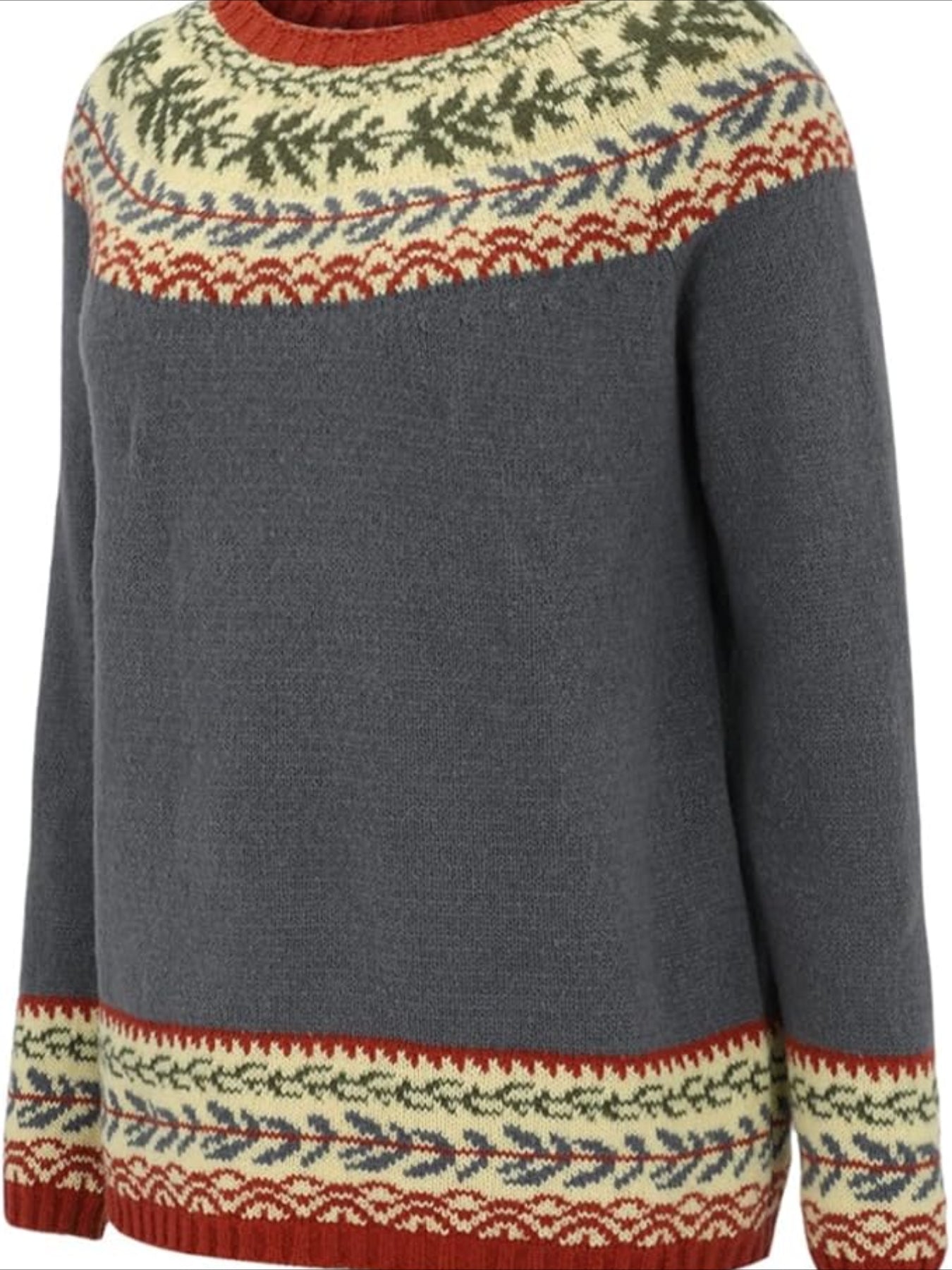 Sale Crew Neck Faire Isle Sweater, Casual Long Sleeve Sweater