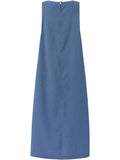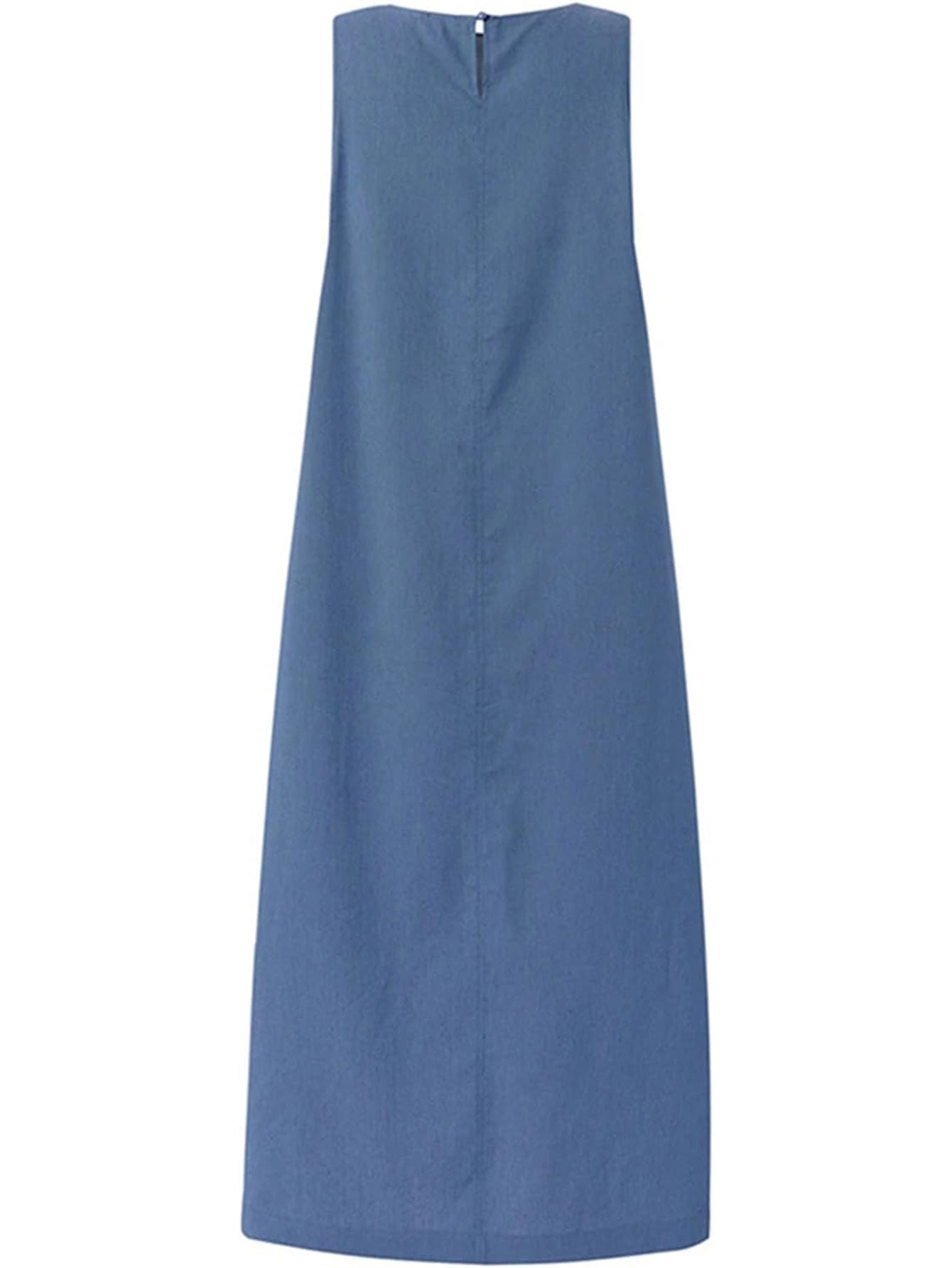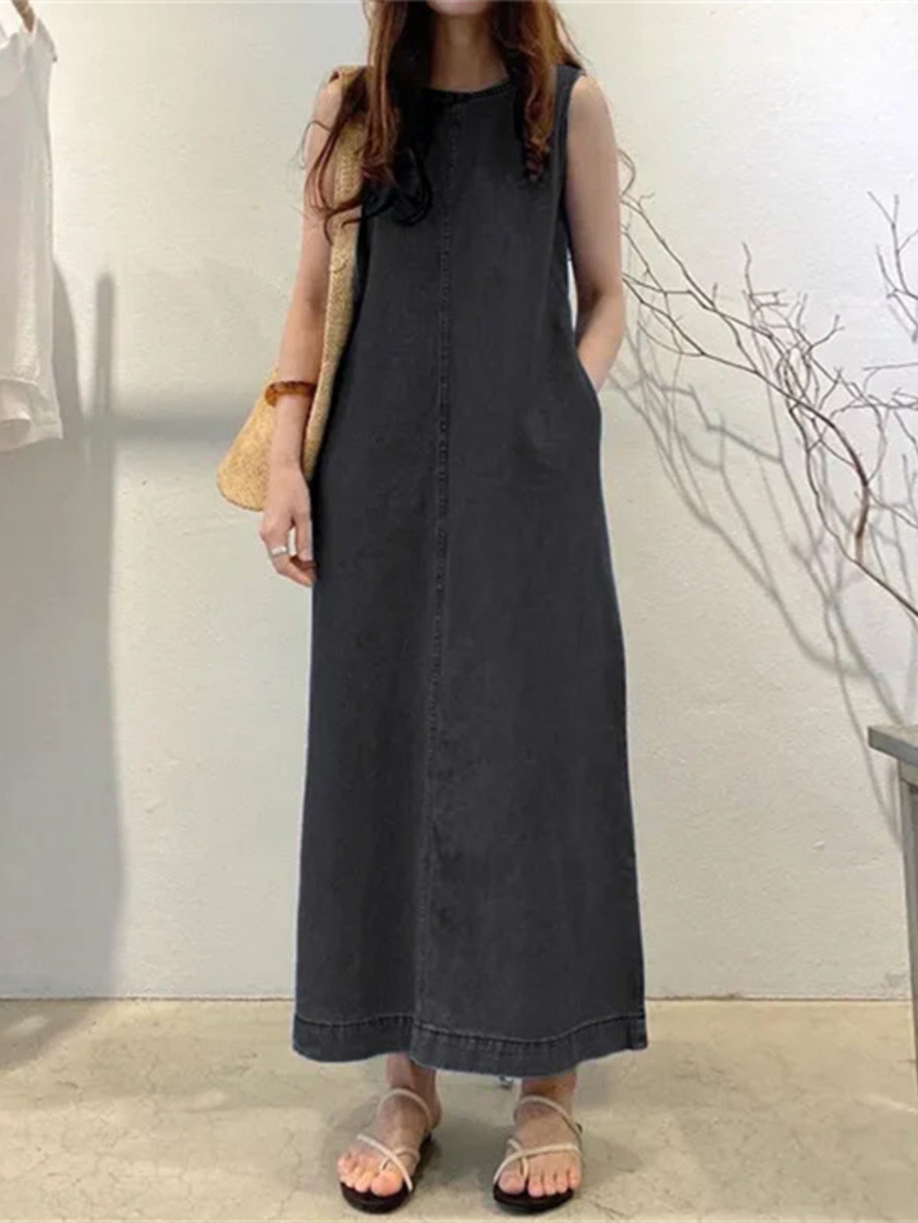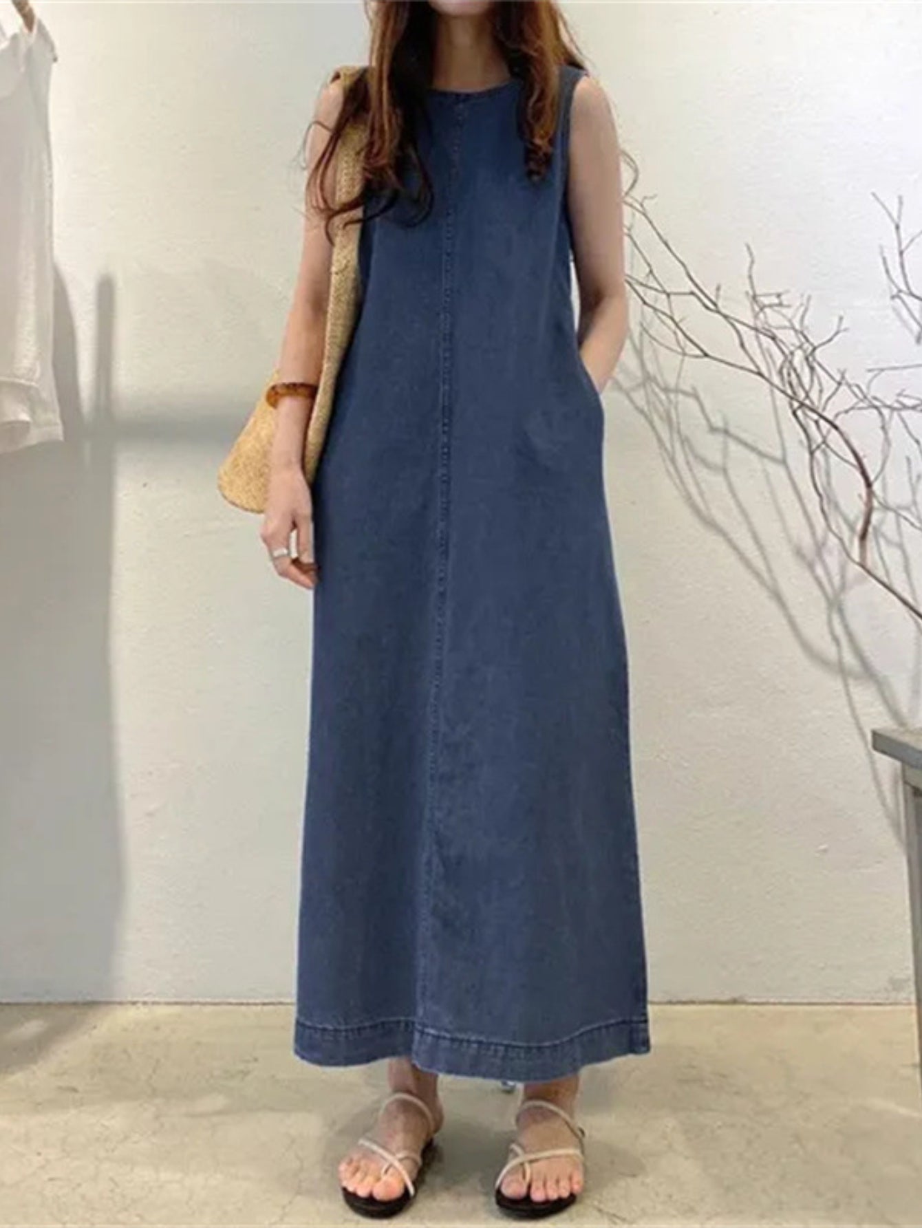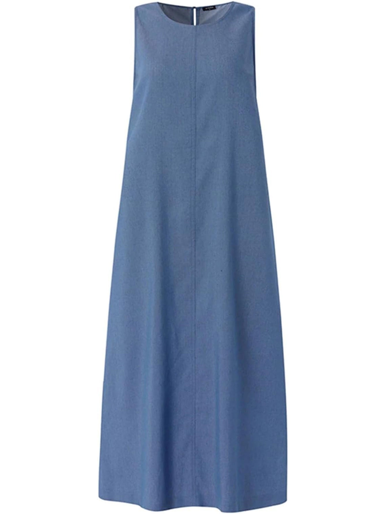 Cross-border foreign trade fashion long dress round neck sleeveless pockets