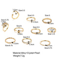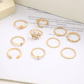 Diamond Heart Pearl Leaf 10 Piece Ring Set
