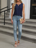 Sale Textured Mock Neck Tank Top, Casual Sleeveless Top