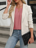 Sale Solid Pleated Trim Blouse, Casual Crew Neck Short Sleeve Blouse