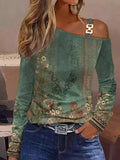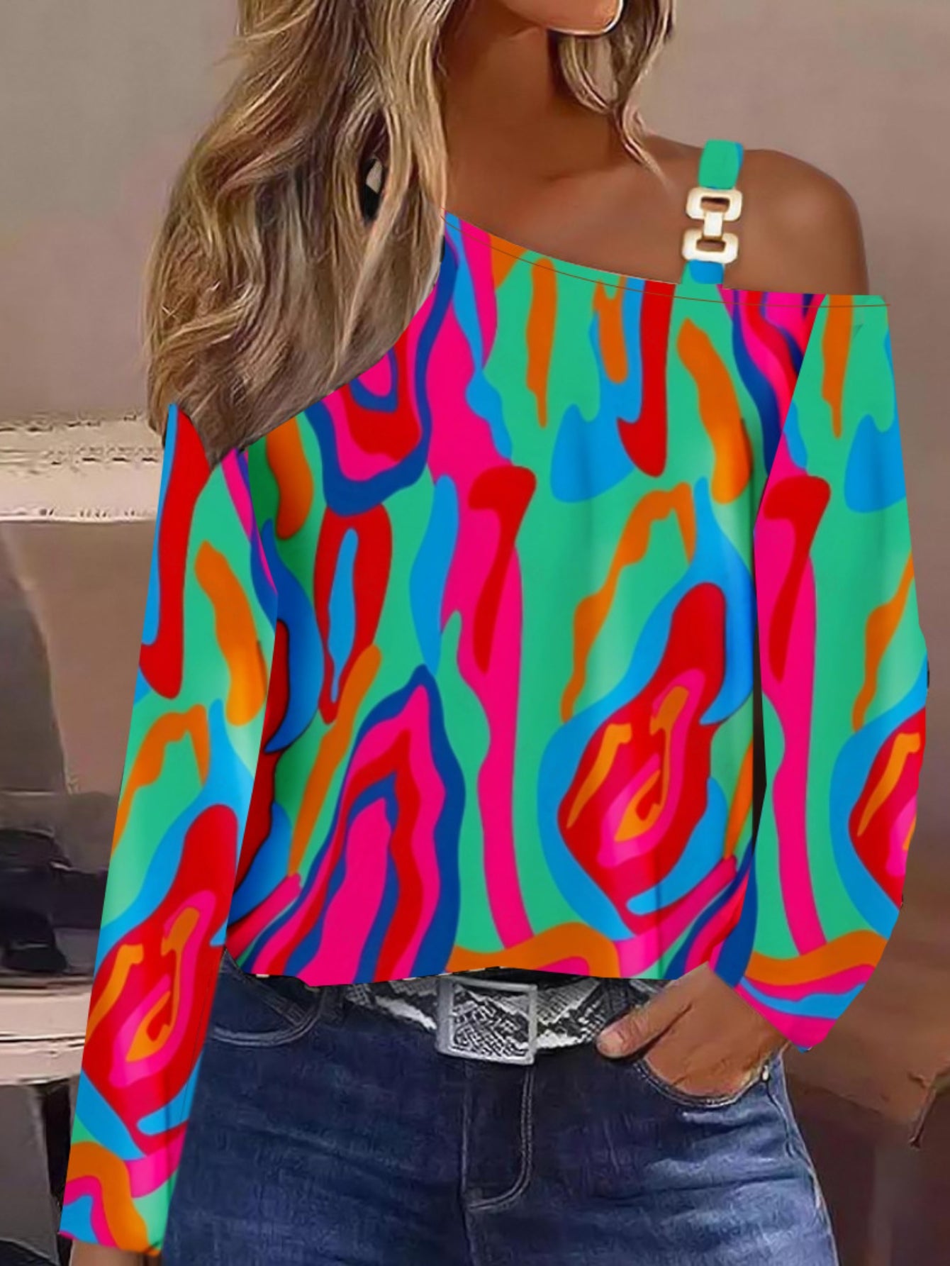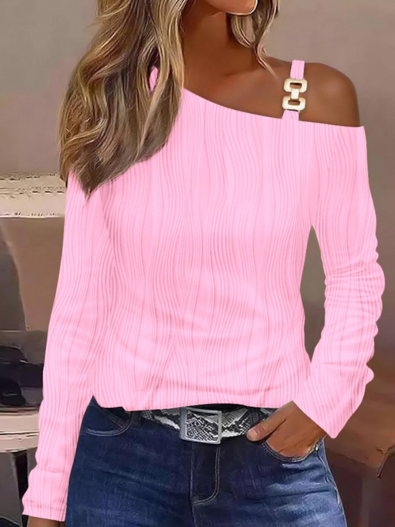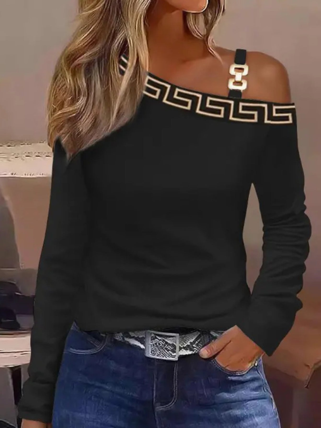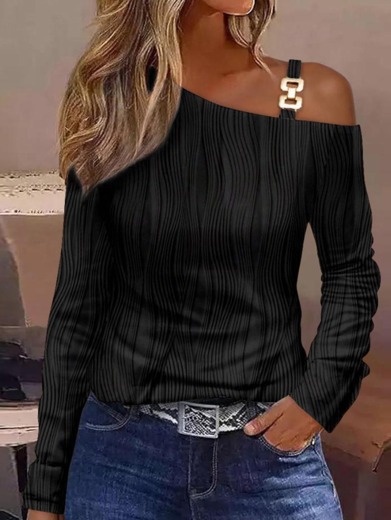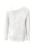 Cutout Lace Stitching Cold Shoulder T-Shirt, Casual Long Sleeve Top