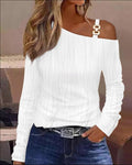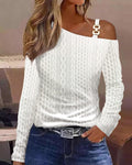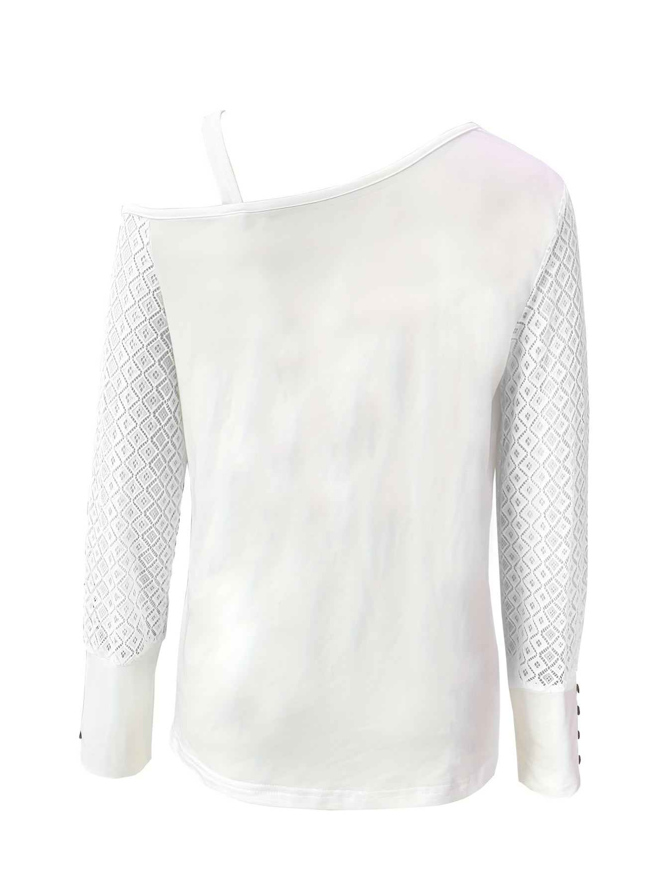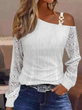 Sale Cutout Lace Stitching Cold Shoulder T-Shirt, Casual Long Sleeve Top