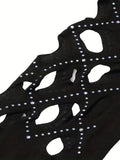 Sale Color Block Twist Cut Out Stretchy One-piece Swimsuit, Tie Back Criss Cross Ruched Tummy Control Bathing Suits